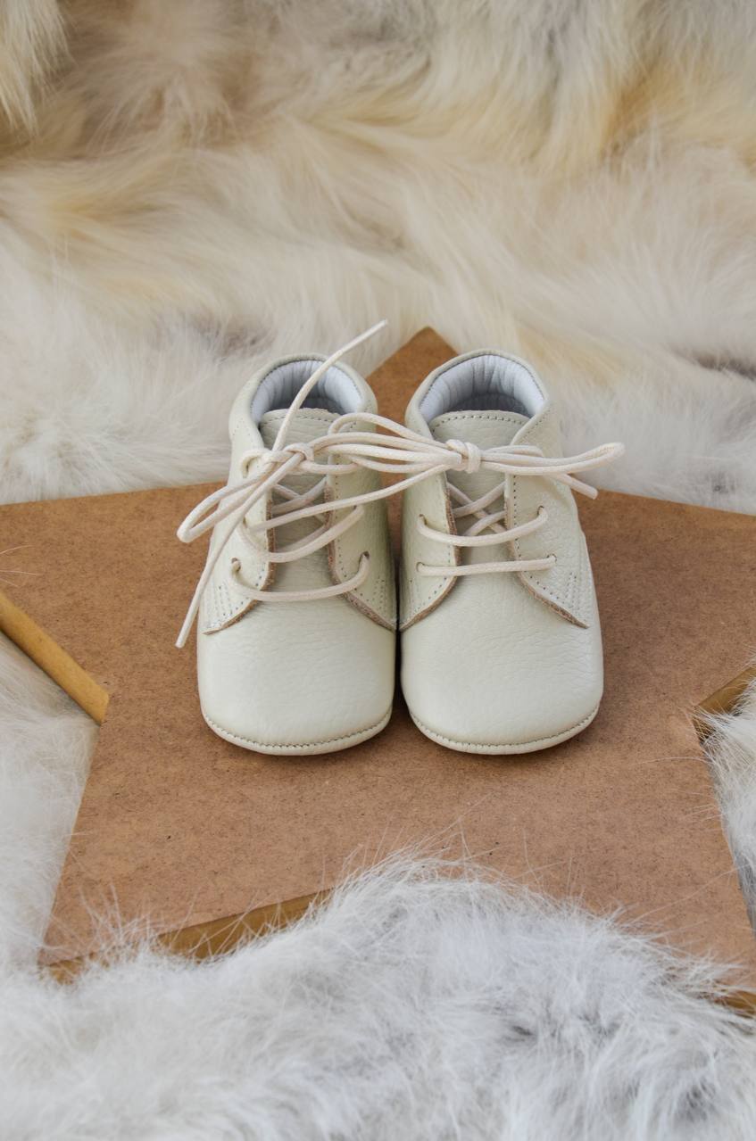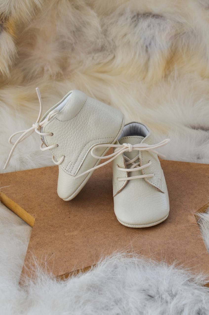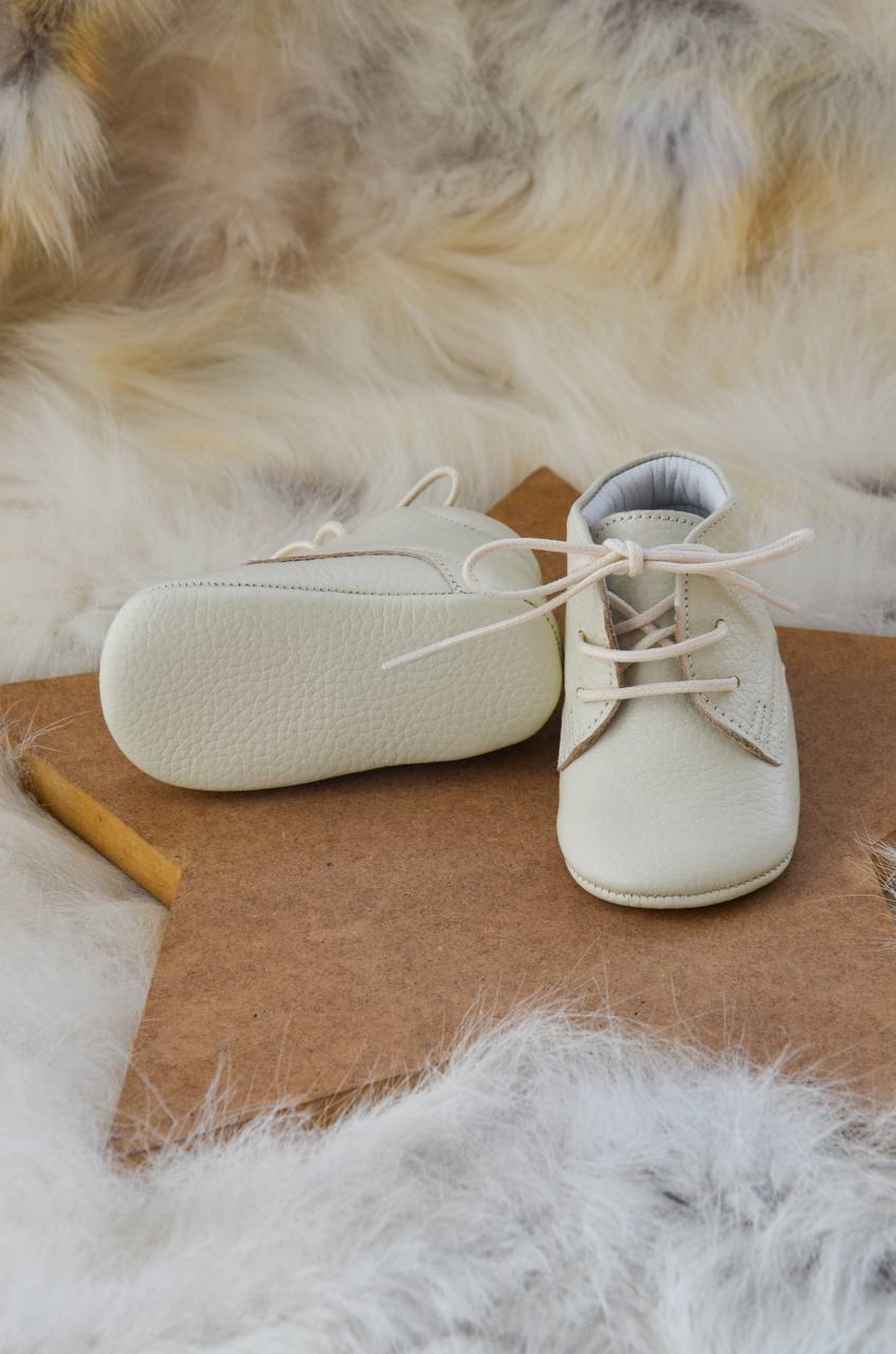 El Yapımı Gerçek Deri Krem Renkli Bağcıklı Bebek Patik