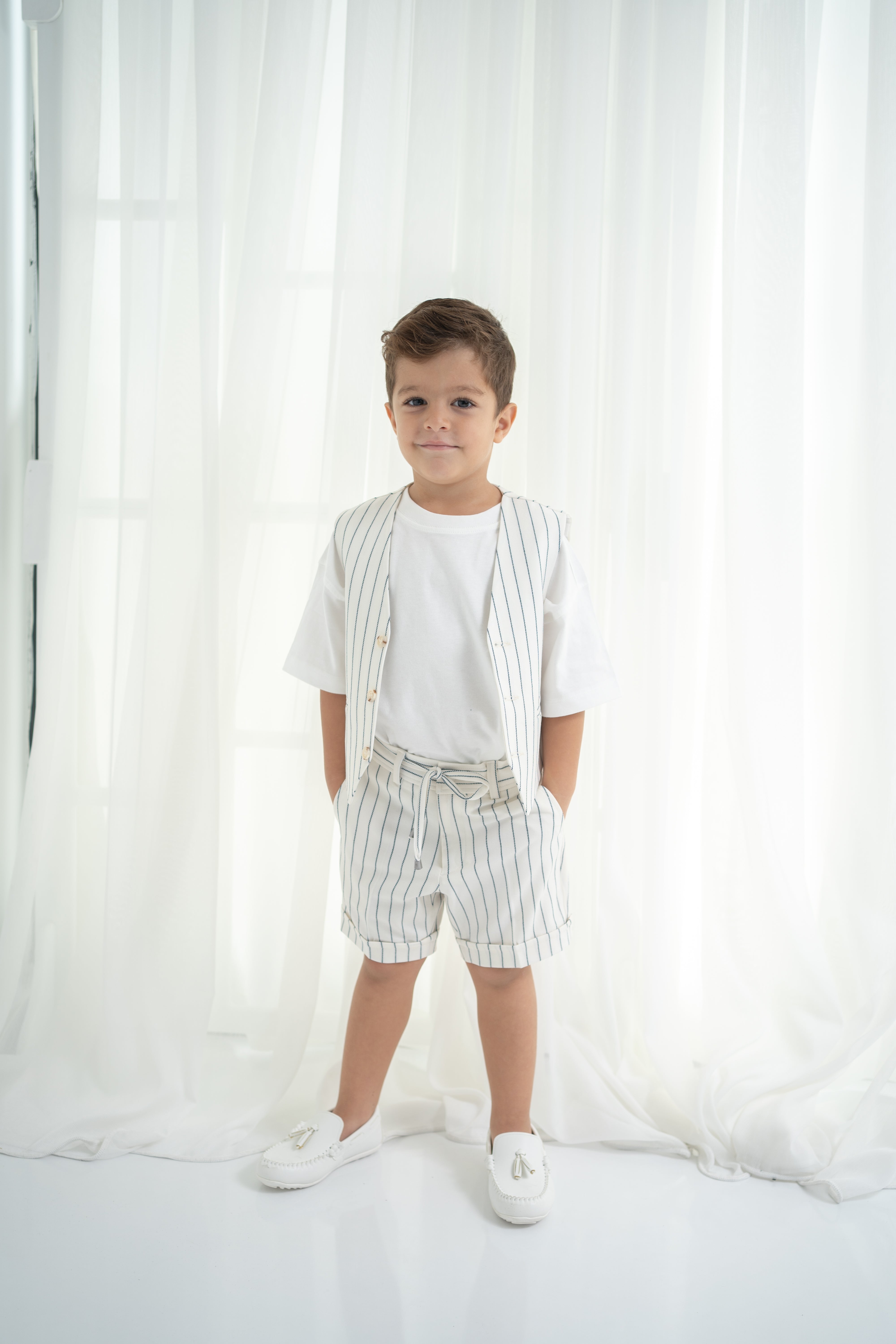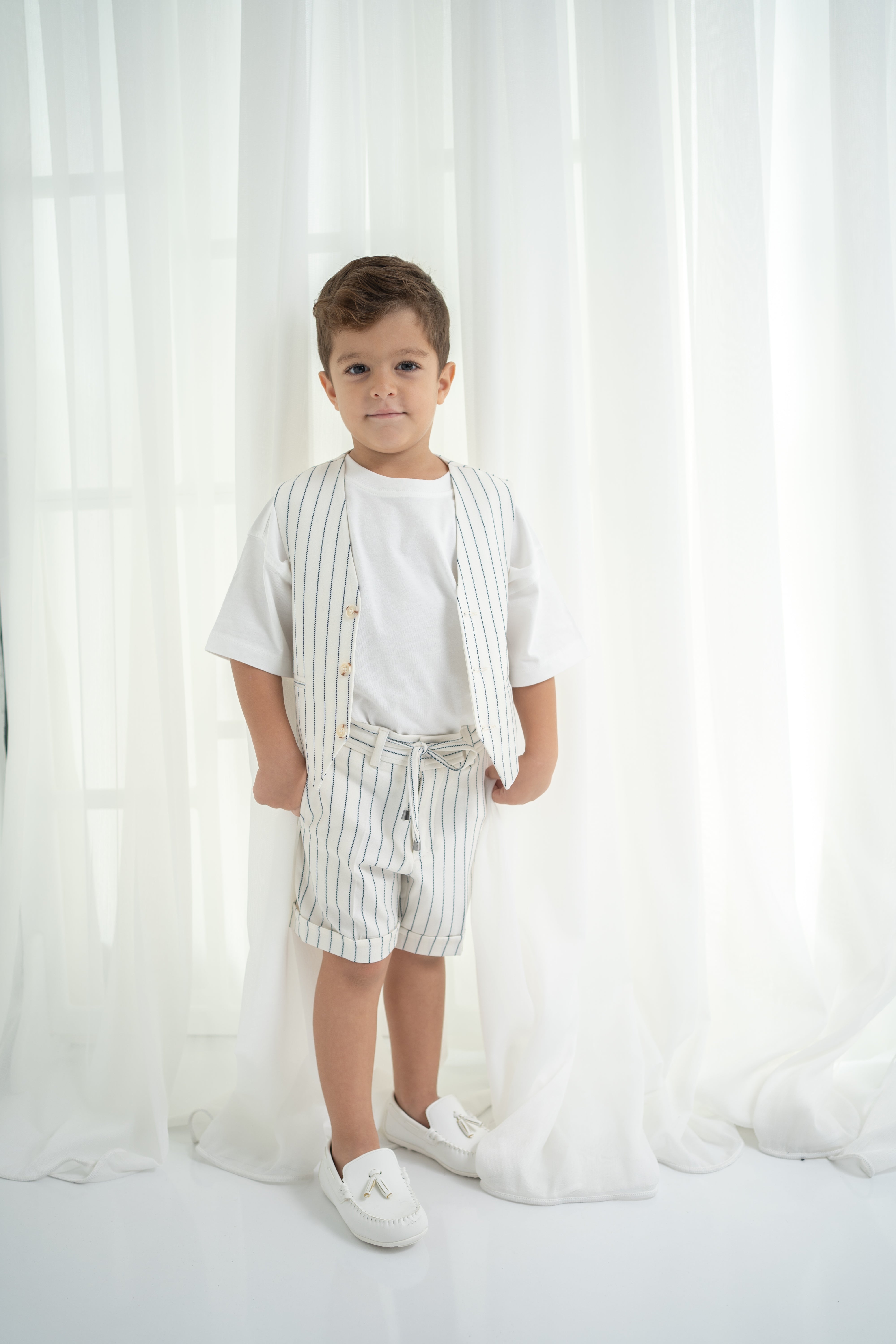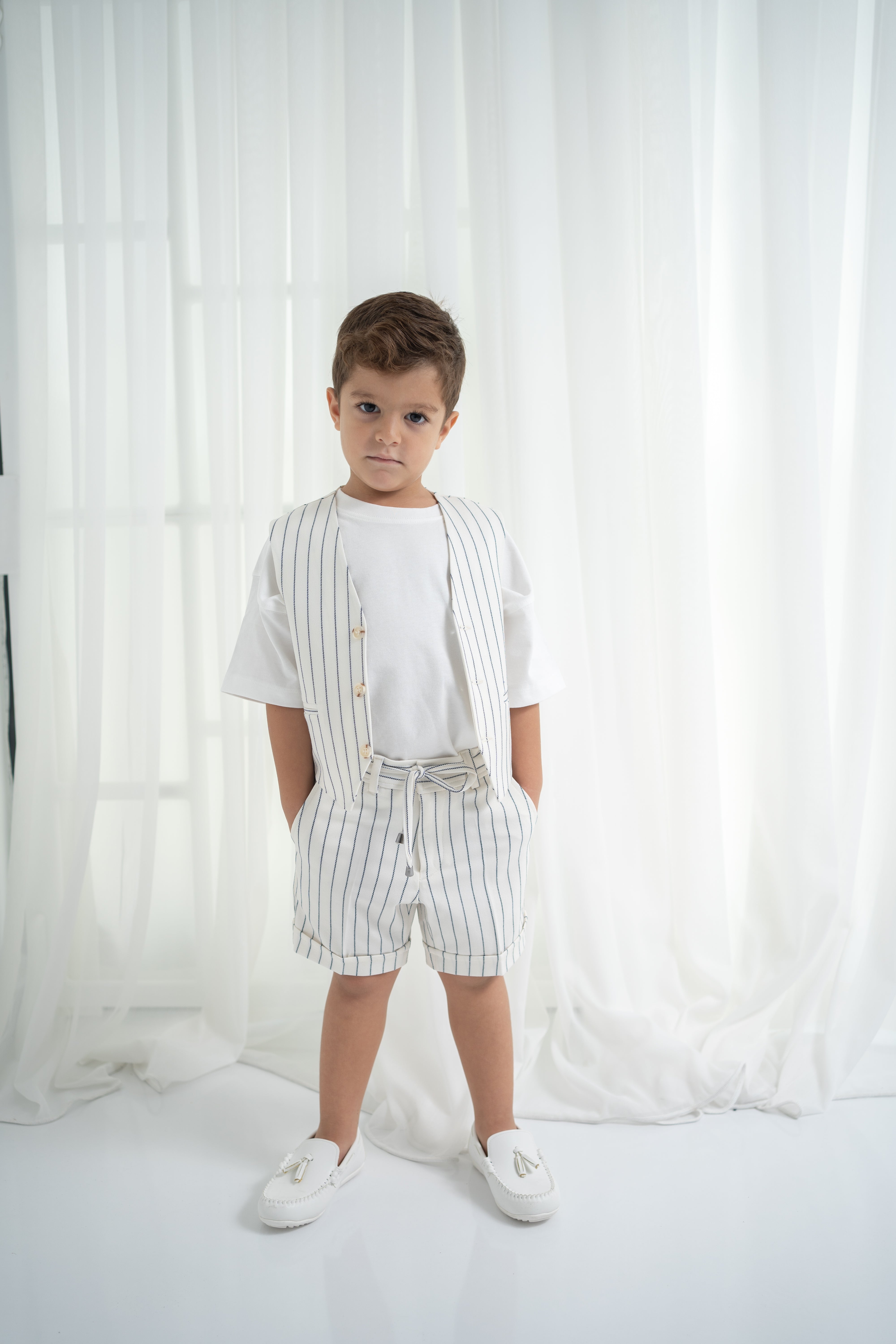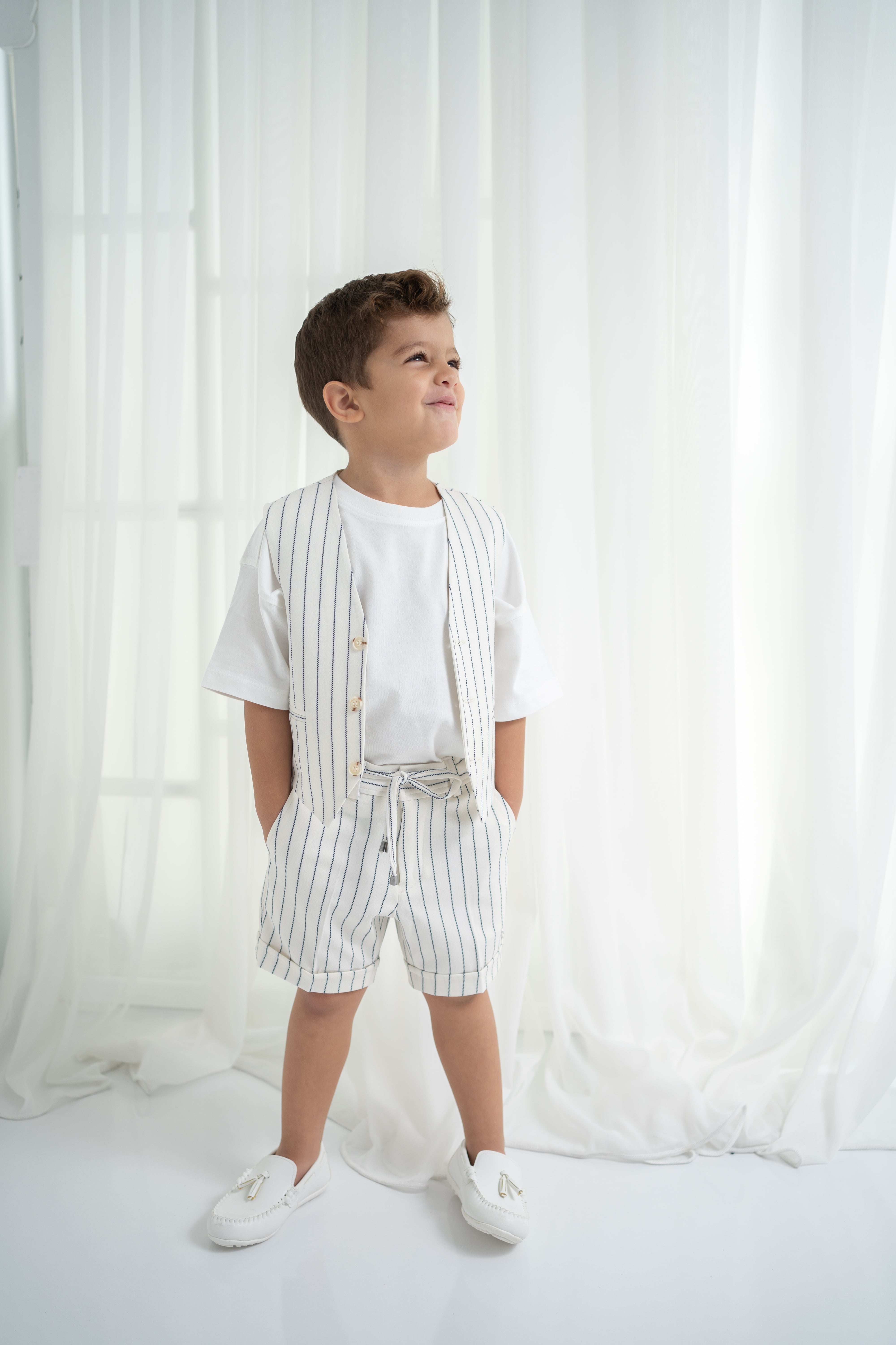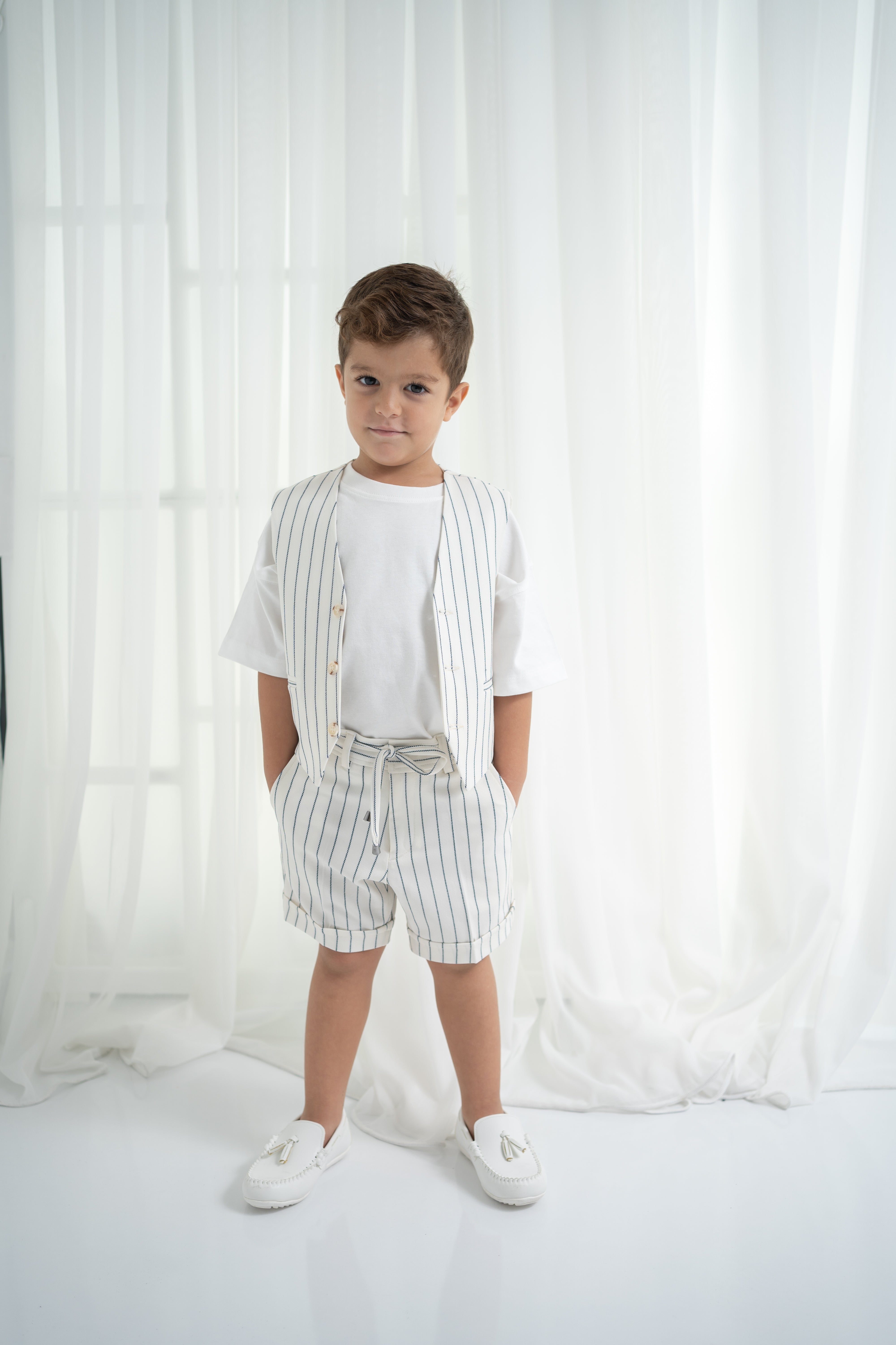 Çizgili Yelek ve Şortlu Erkek Çocuk Takımı