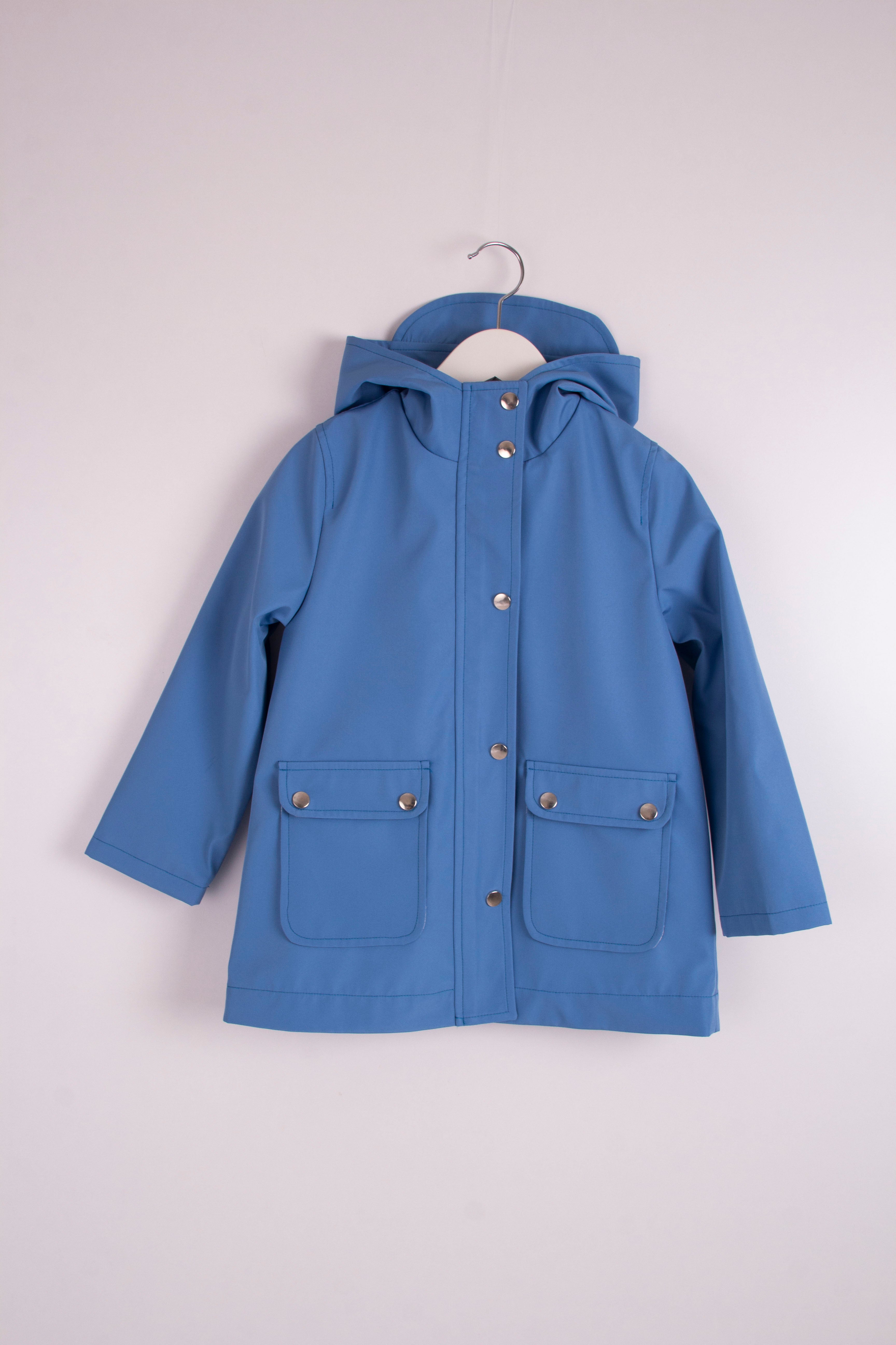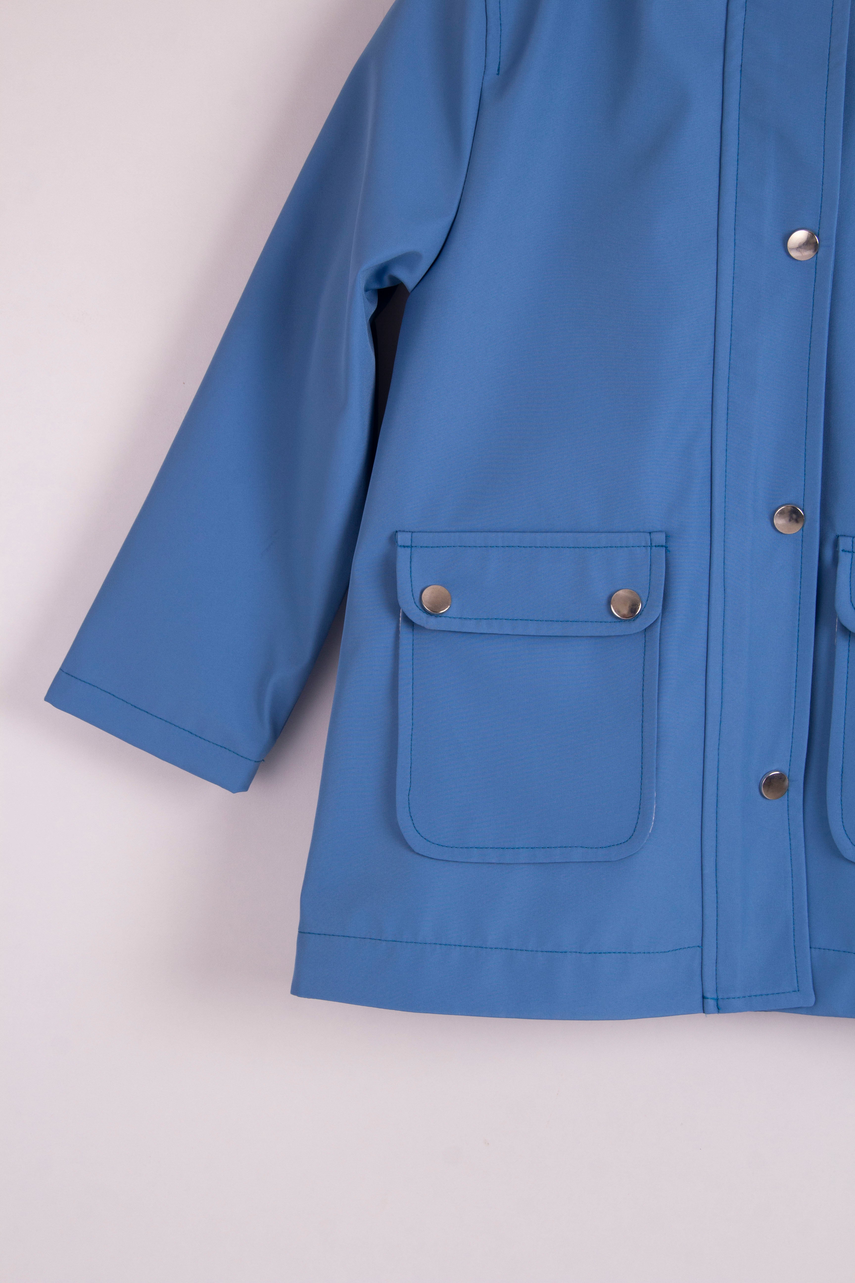 Çocuk Mavi Kapüşonlu Su Geçirmez Mont