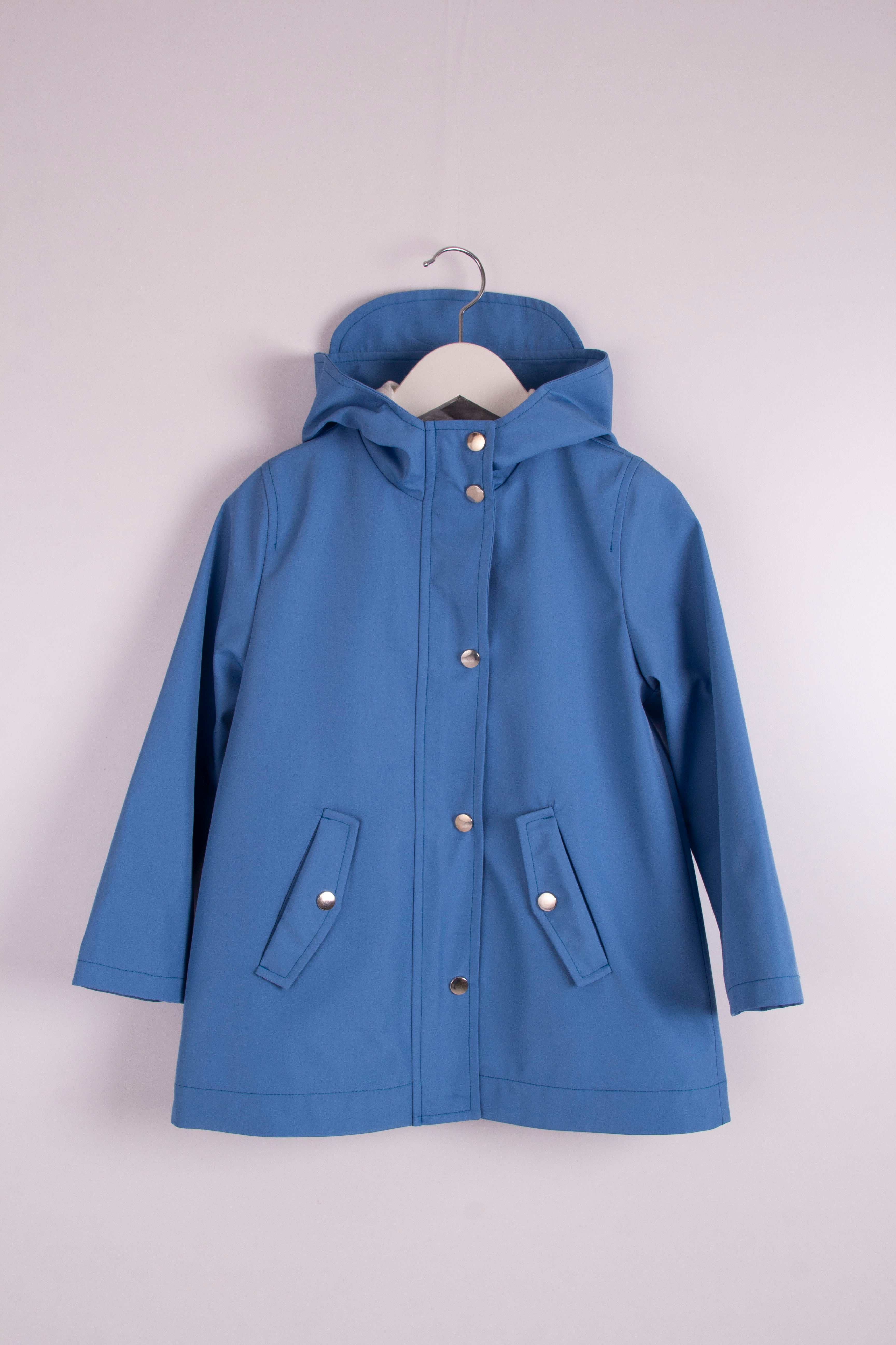 Çocuk Mavi Kapüşonlu Su Geçirmez Mont – Cepli