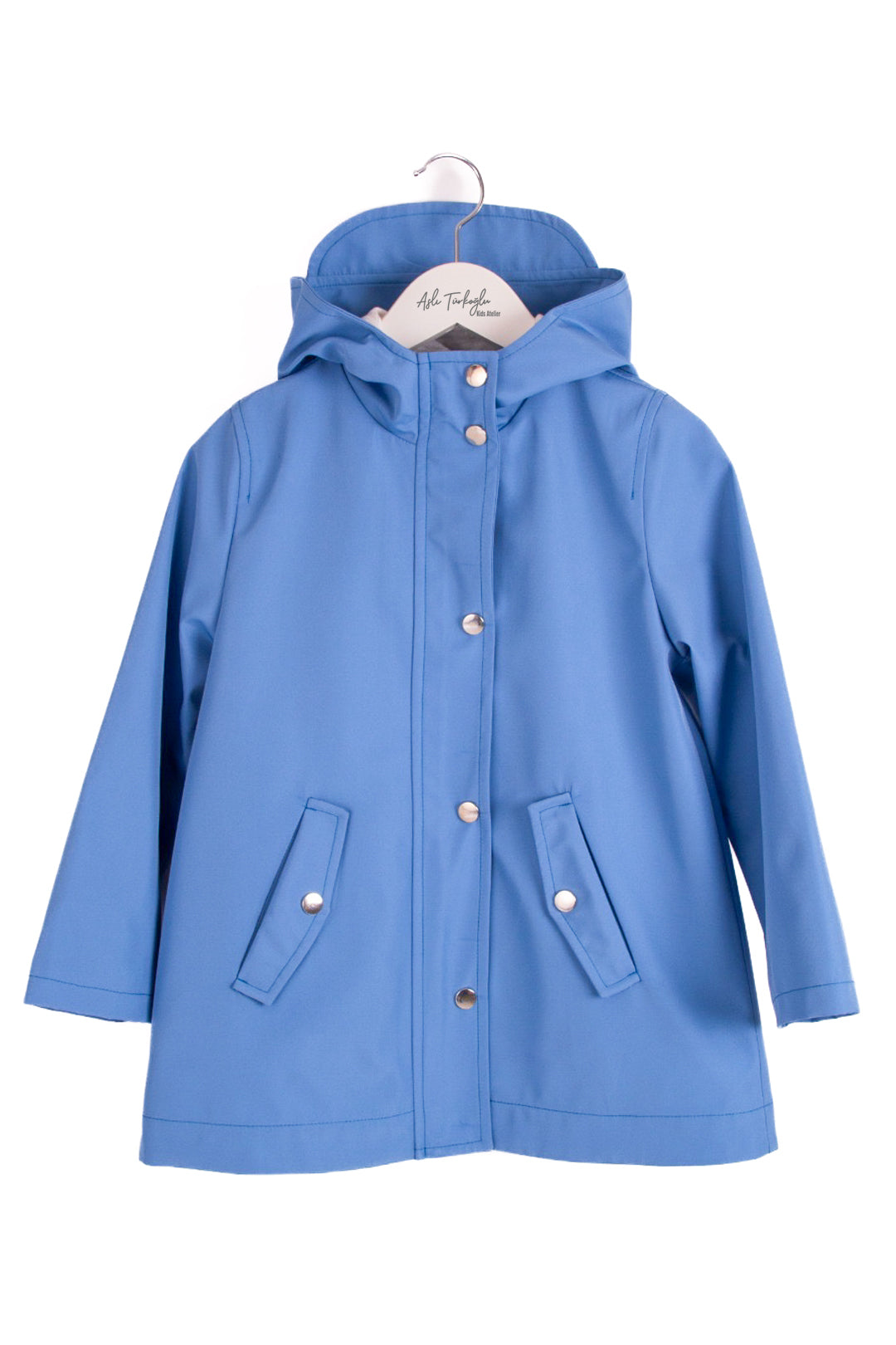 Çocuk Mavi Kapüşonlu Su Geçirmez Mont – Cepli Yağmurluk