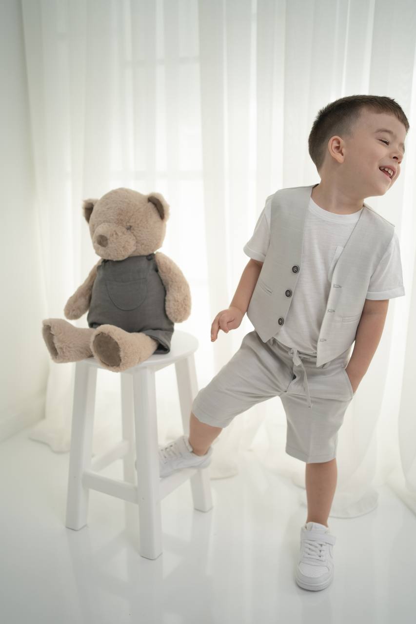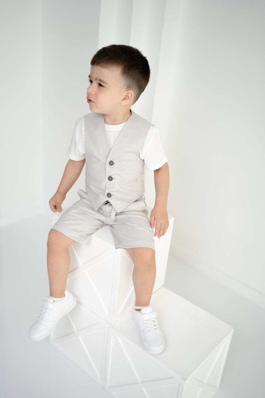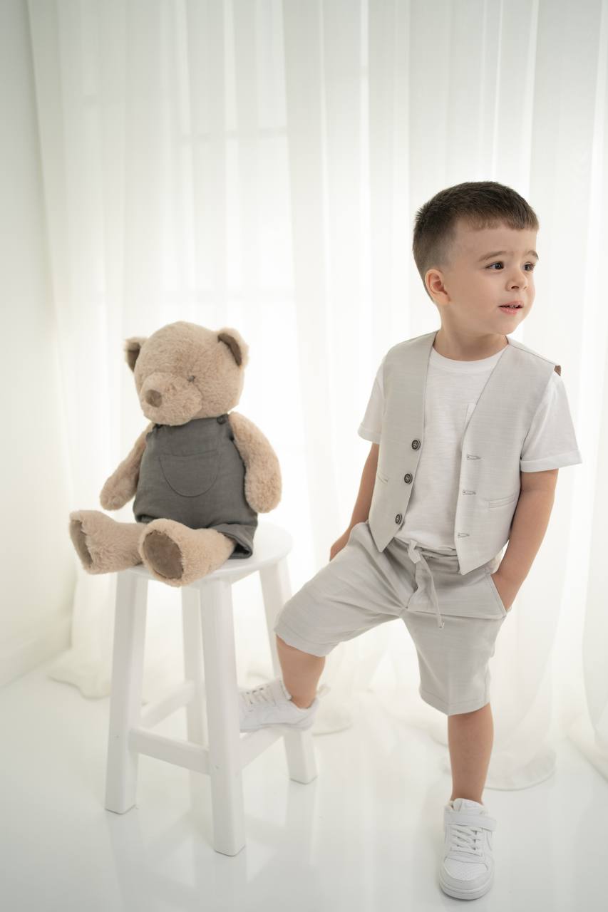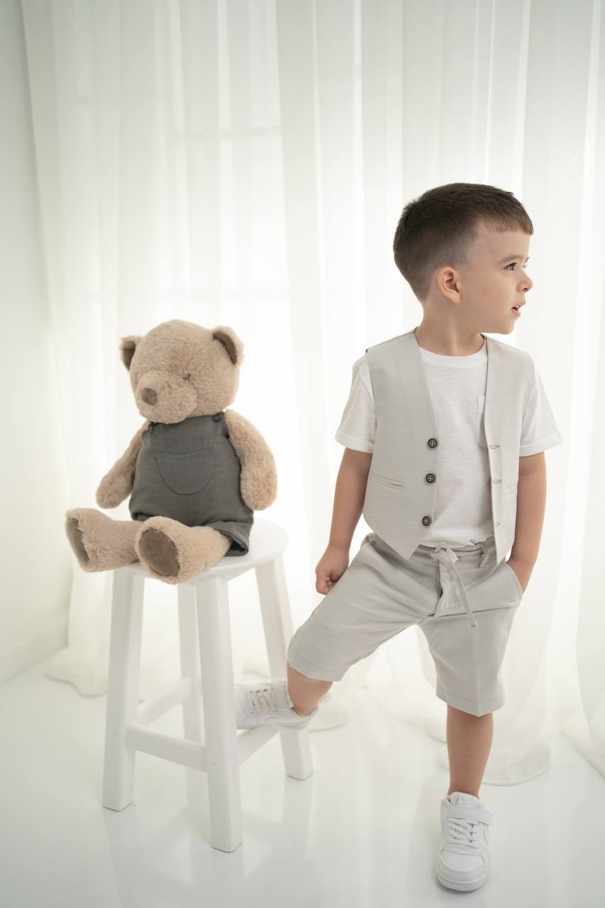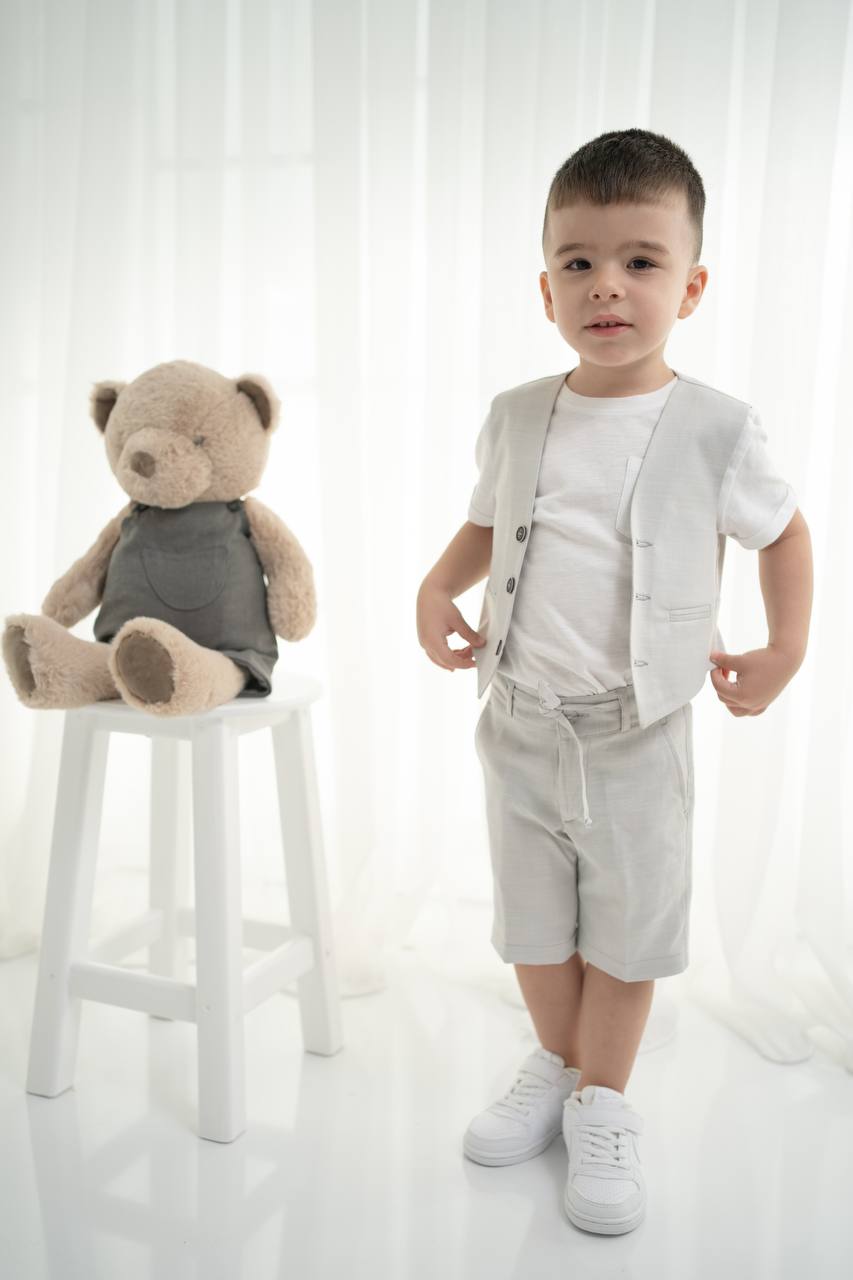 Erkek Çocuk Keten 3’lü Takım – Yelek, Şort ve Thişört