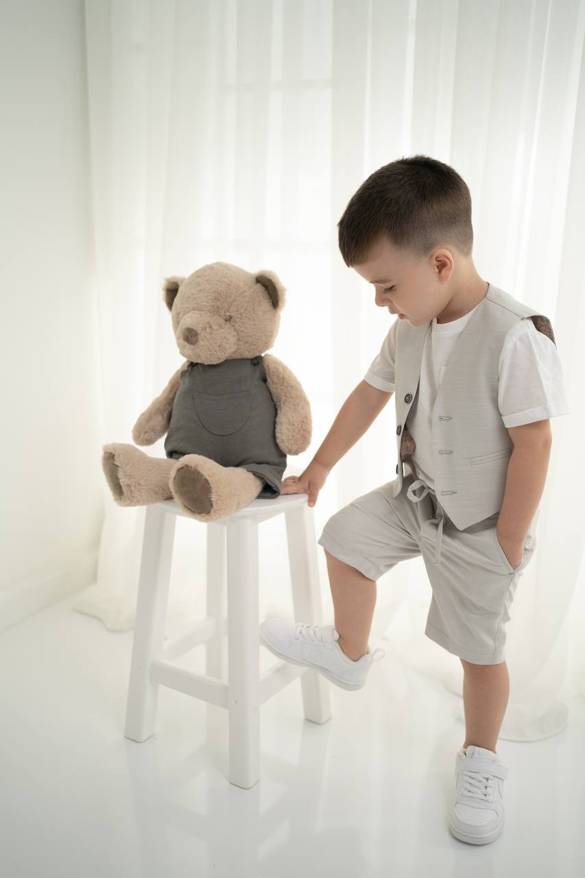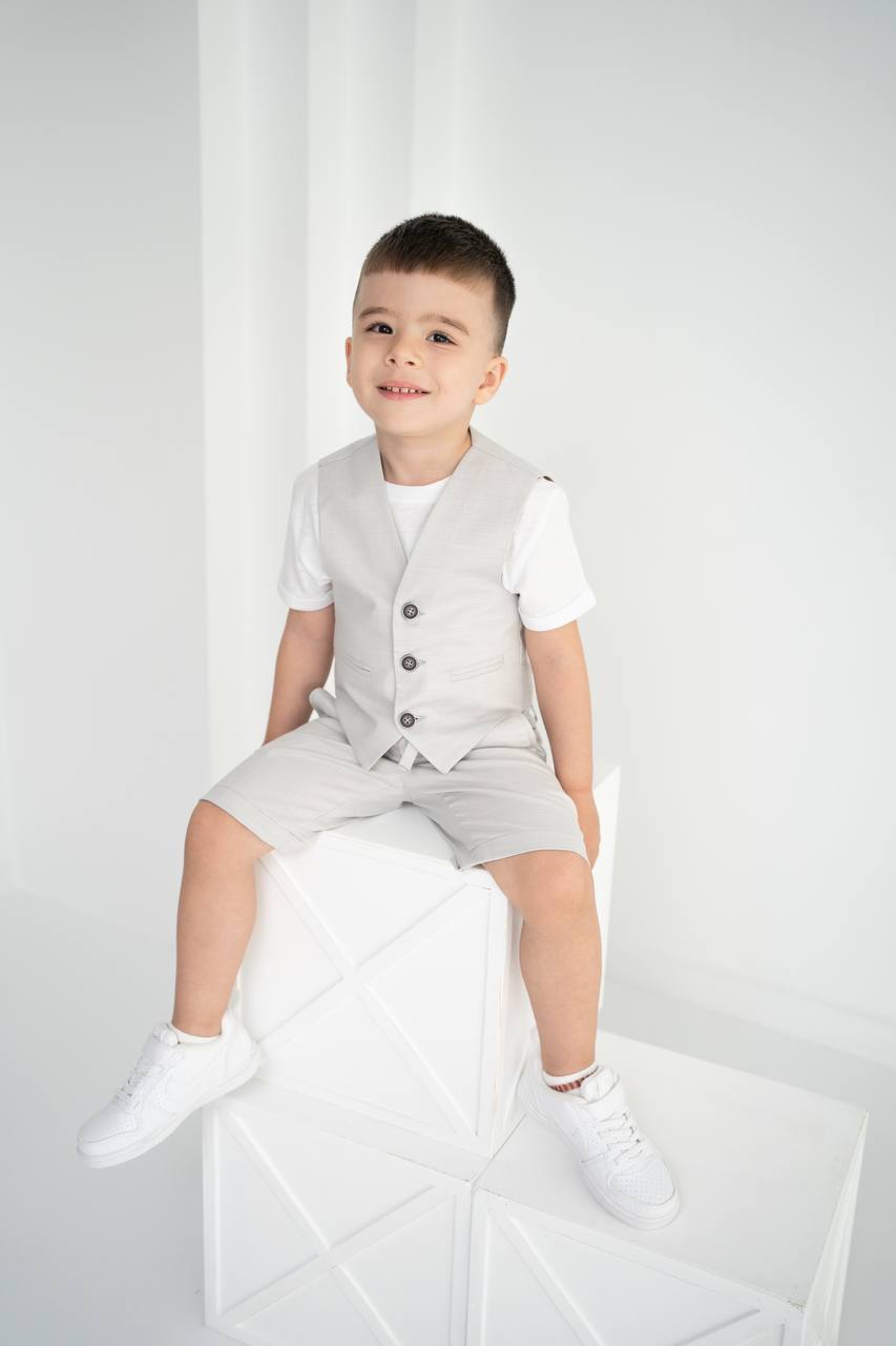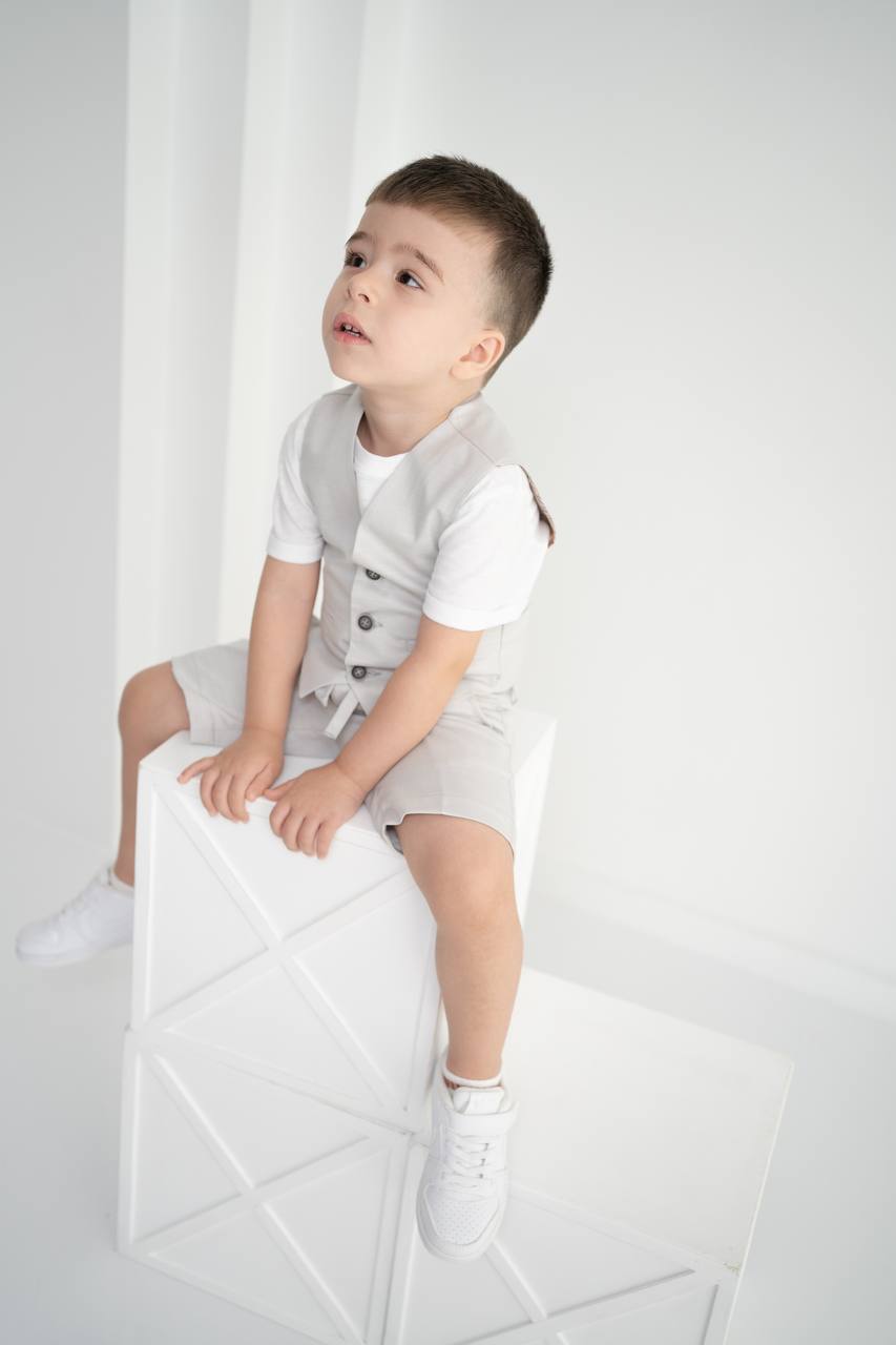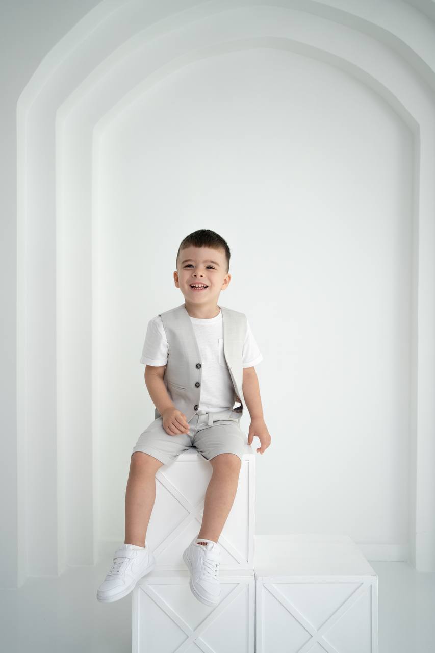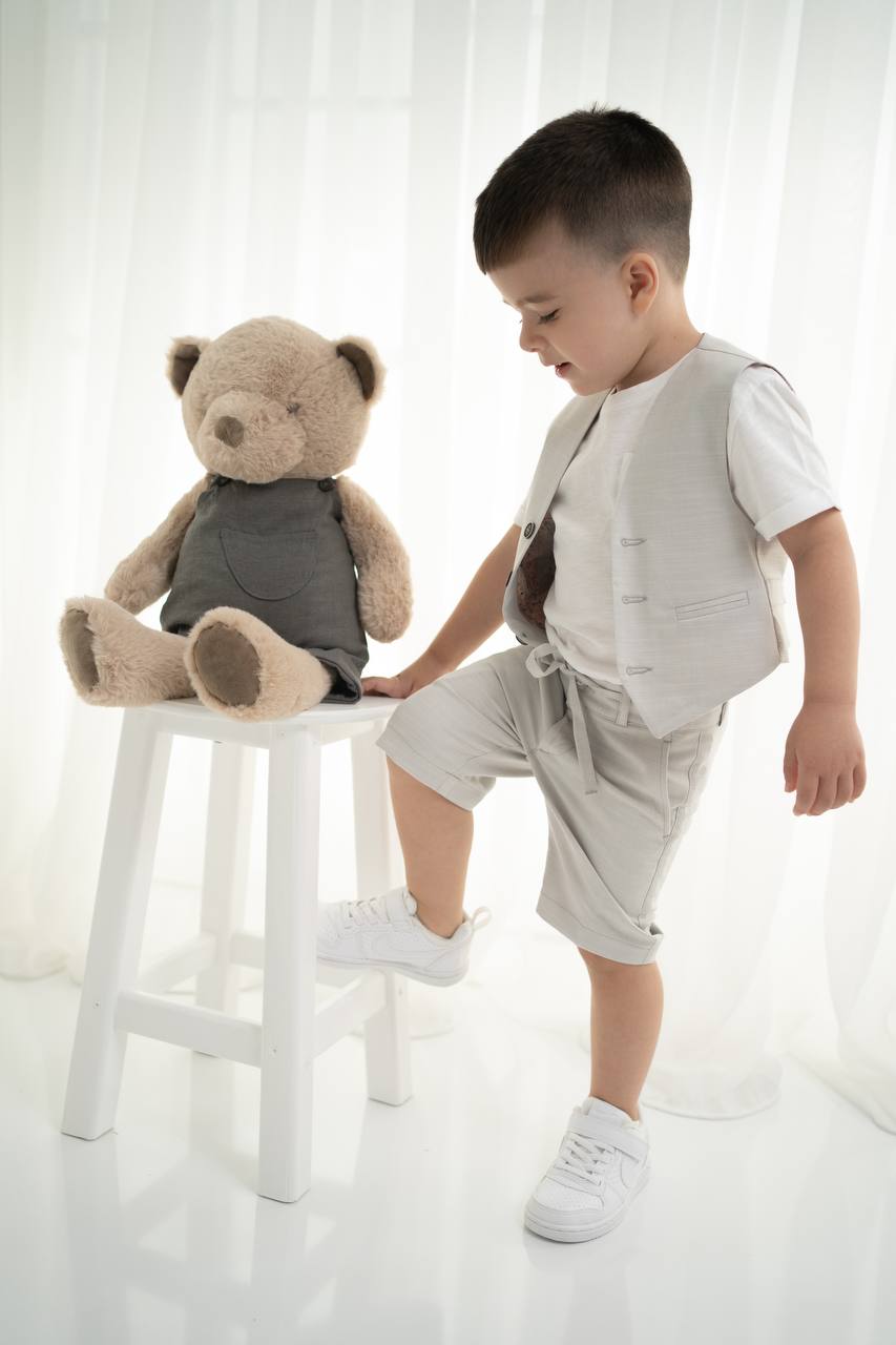 Erkek Çocuk Keten 3’lü Takım – Yelek, Şort ve Thişört