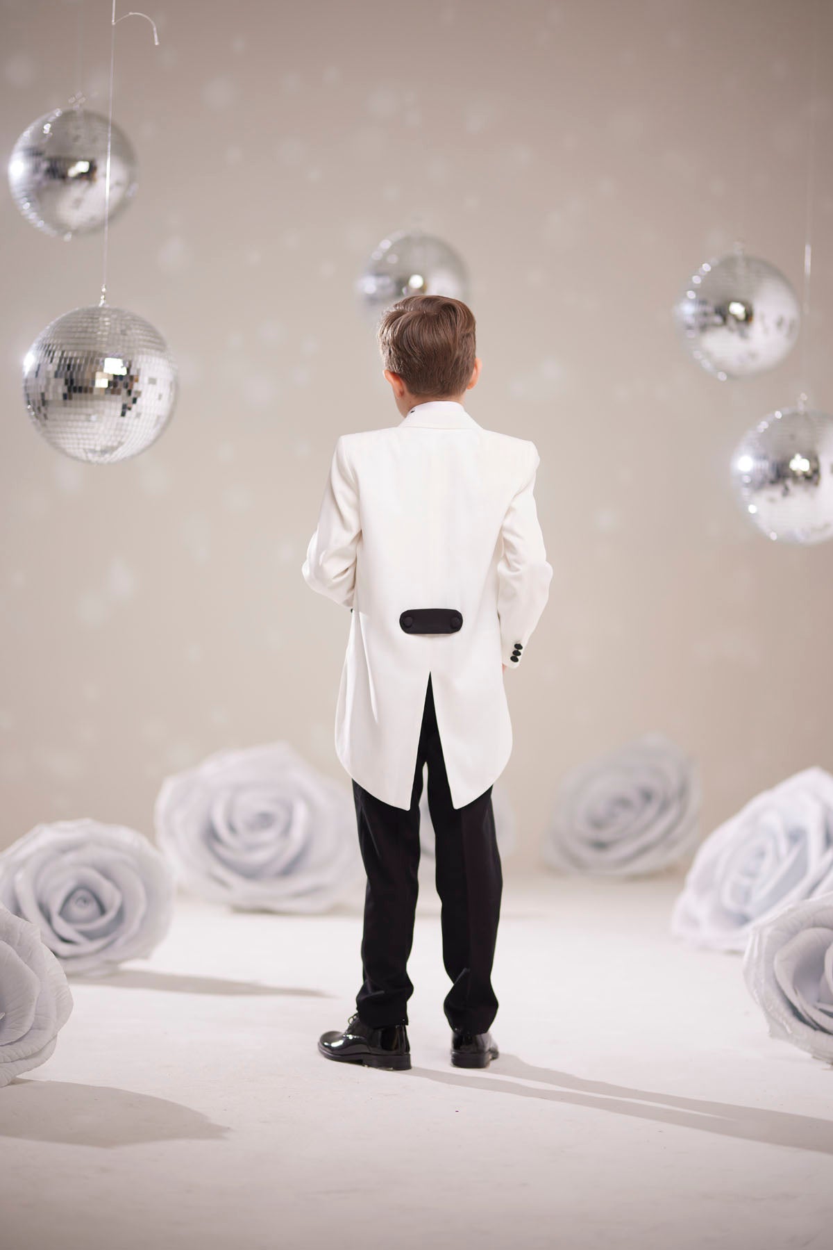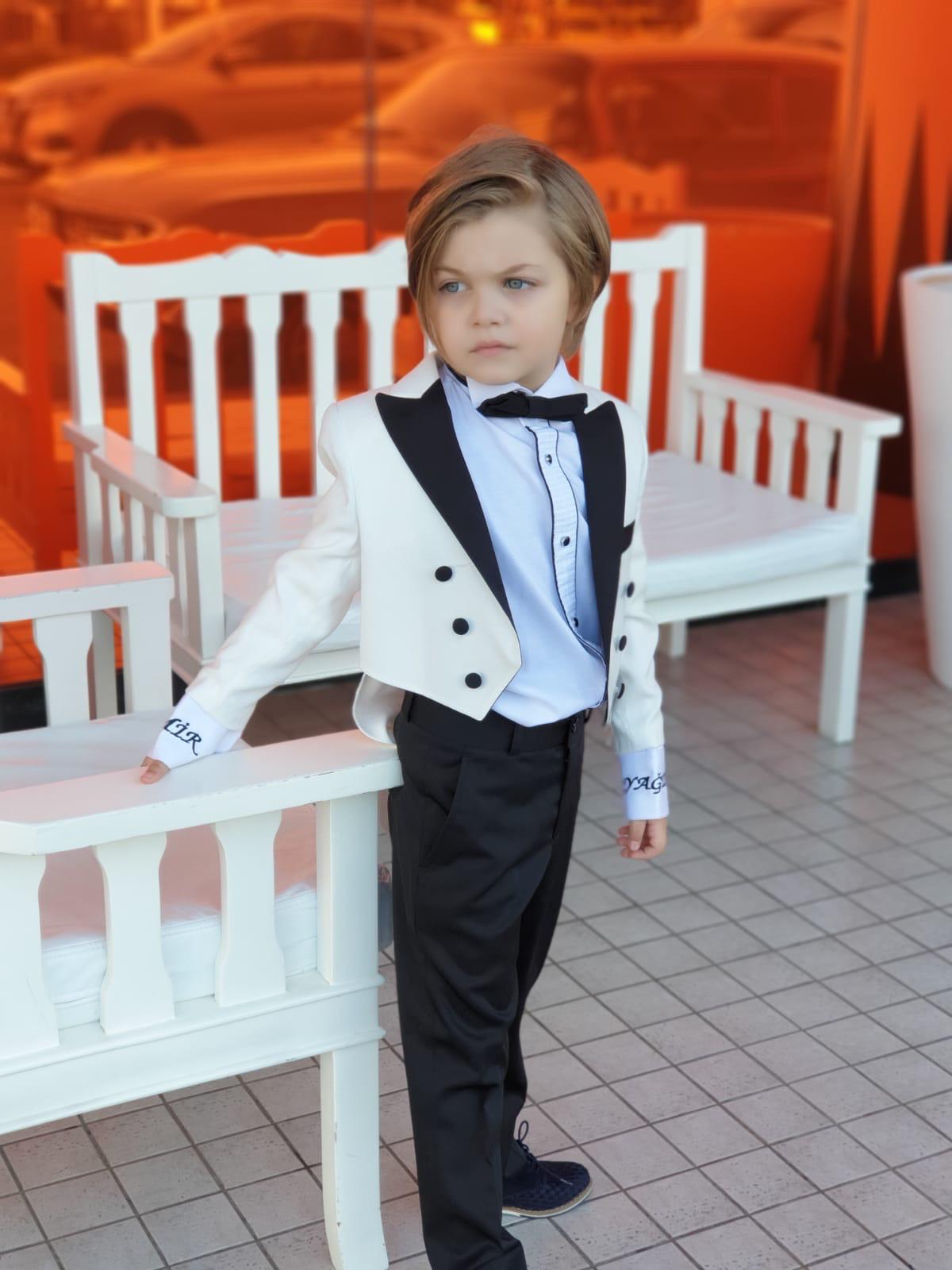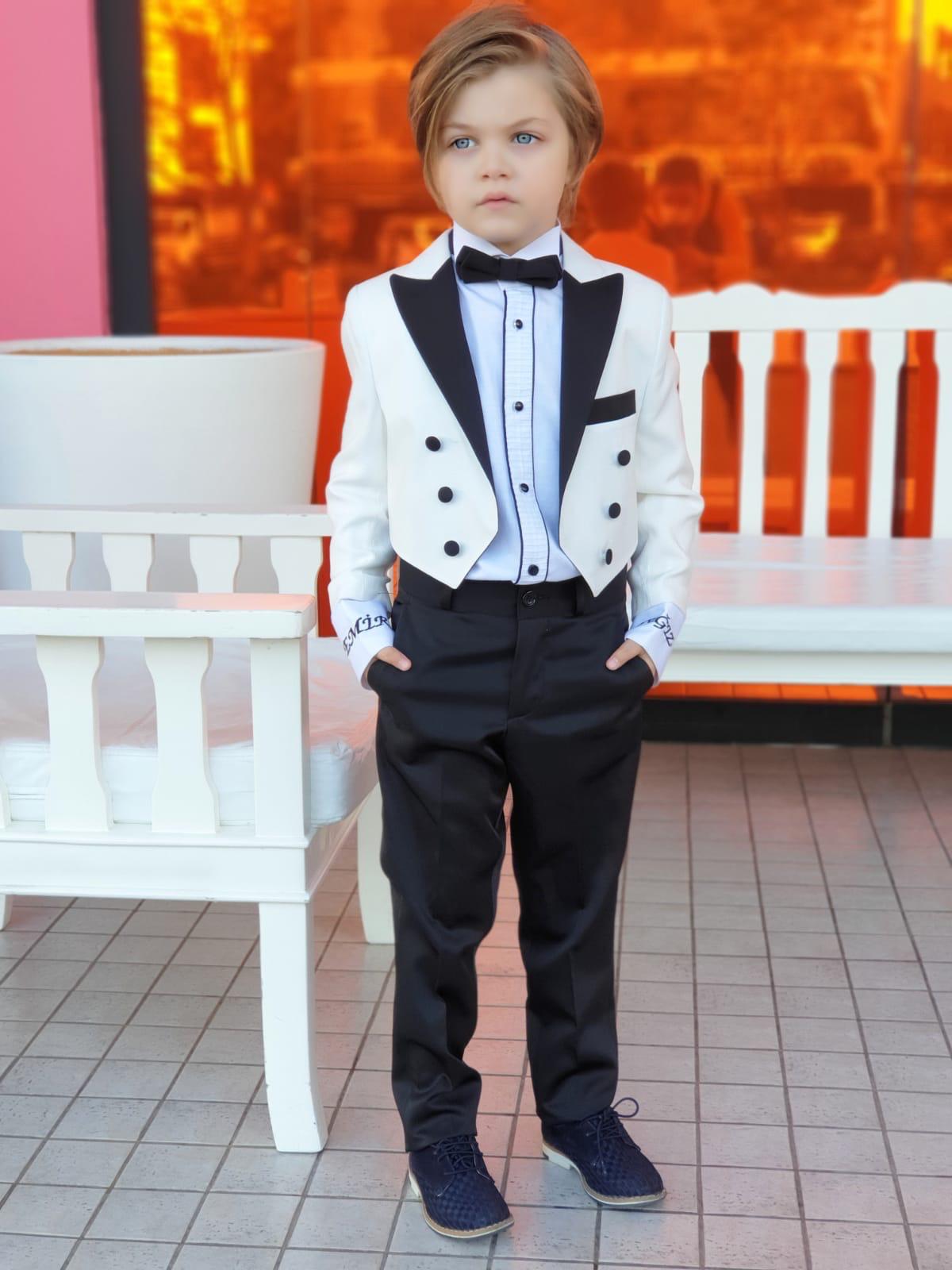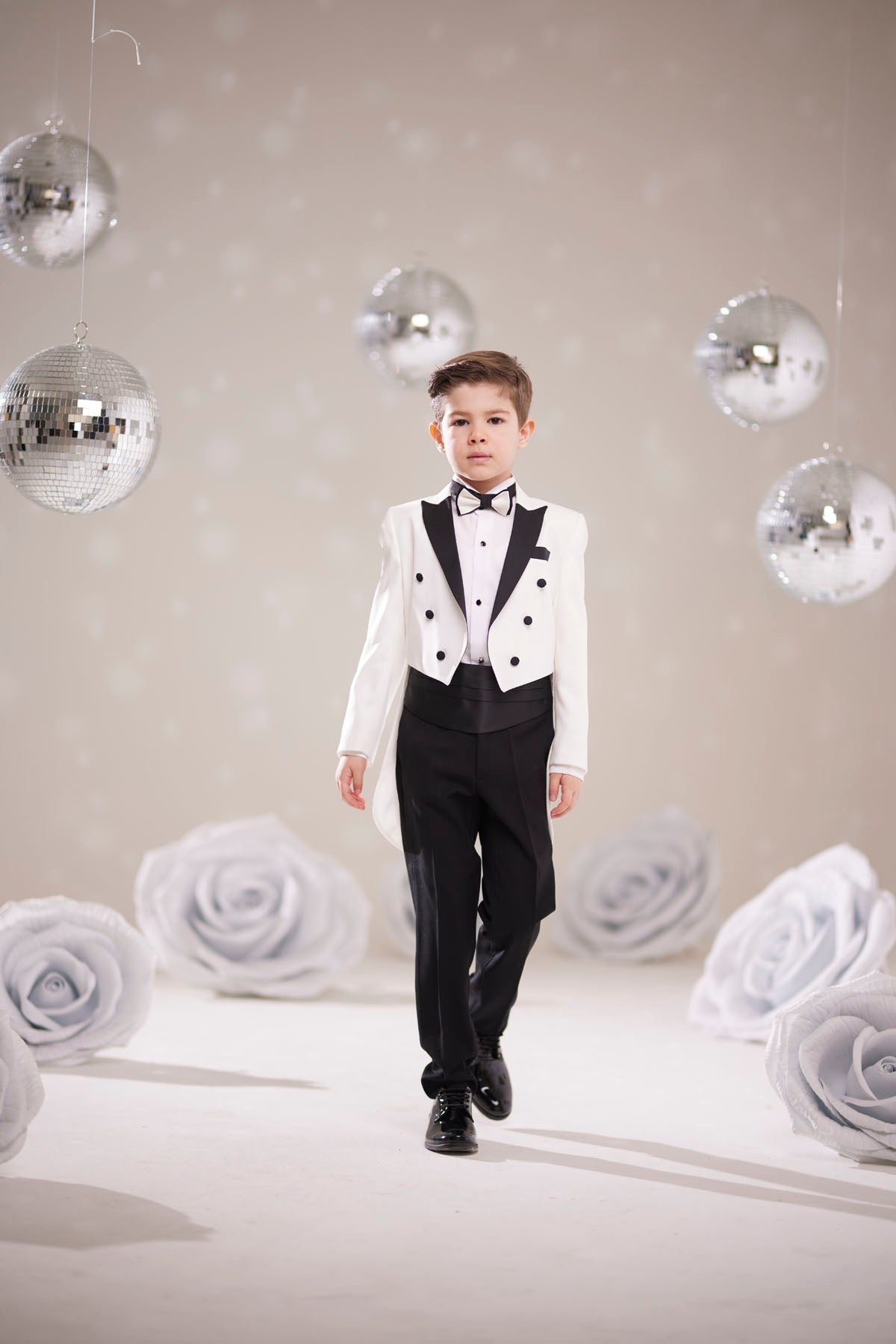 Minik beyefendiler için özel olarak tasarlanmış bu klasik erkek çocuk takım elbisesi, şıklığı ve zarafeti bir araya getiriyor. Özel dikim görünümüne sahip ceket, ütü izli şık pantolon, beyaz gömlek ve uyumlu papyon kombinasyonuyla klasik takım elbise stilini yansıtır. Zarif dikiş detayları ve kaliteli kumaşı ile düğün, sünnet, mezuniyet, özel davet gibi en özel günlerde çocuğunuzun göz alıcı bir duruş sergilemesini sağlar.
