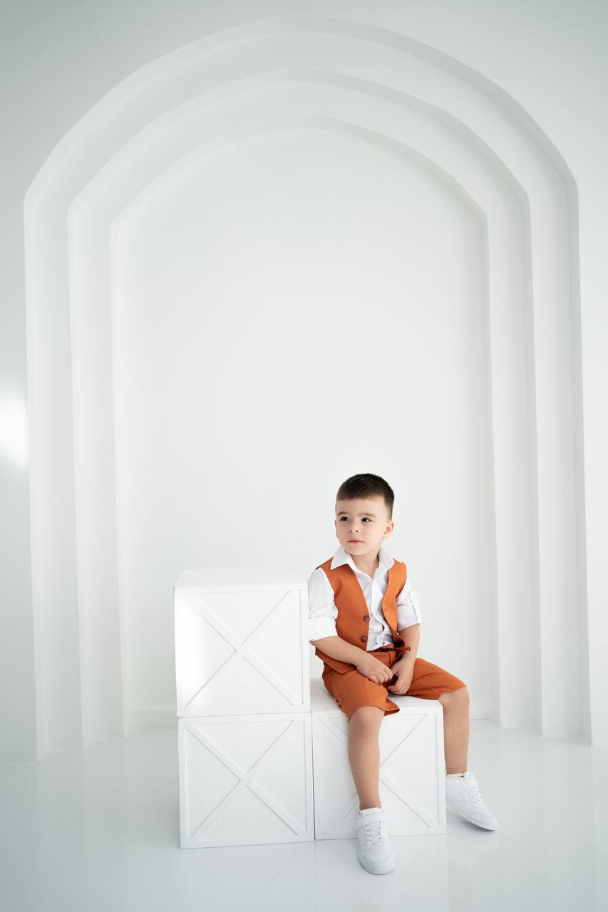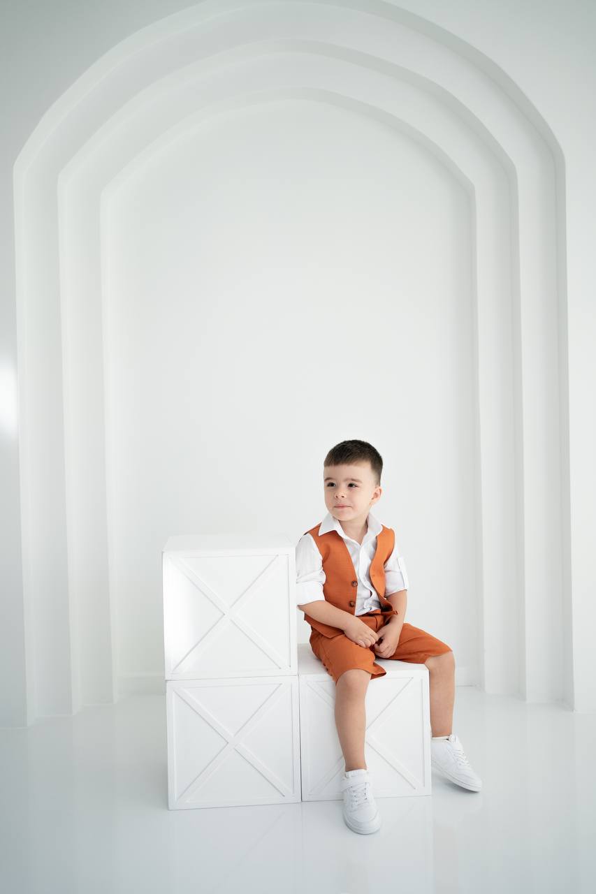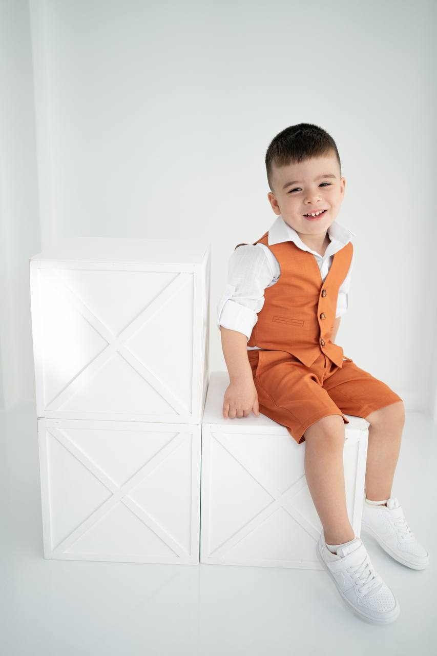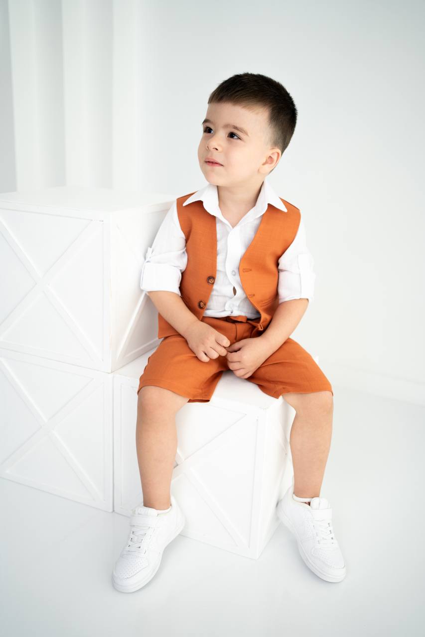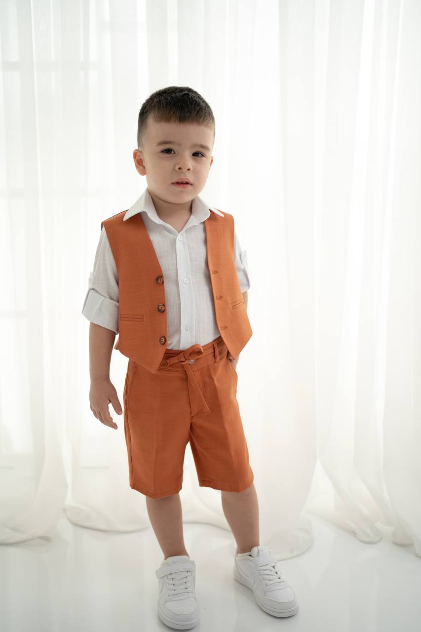 Erkek Çocuk Turuncu Yelekli Şort Takım