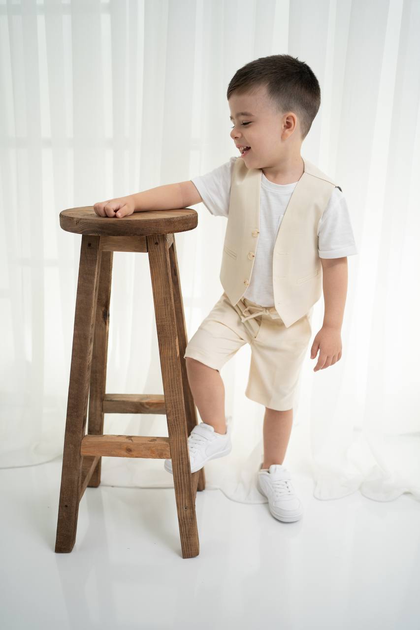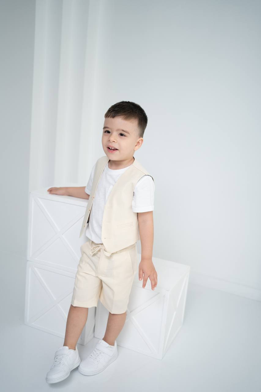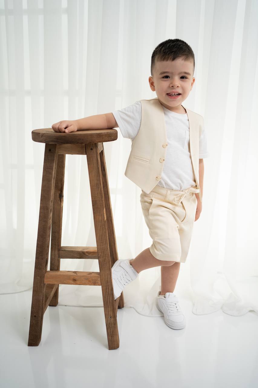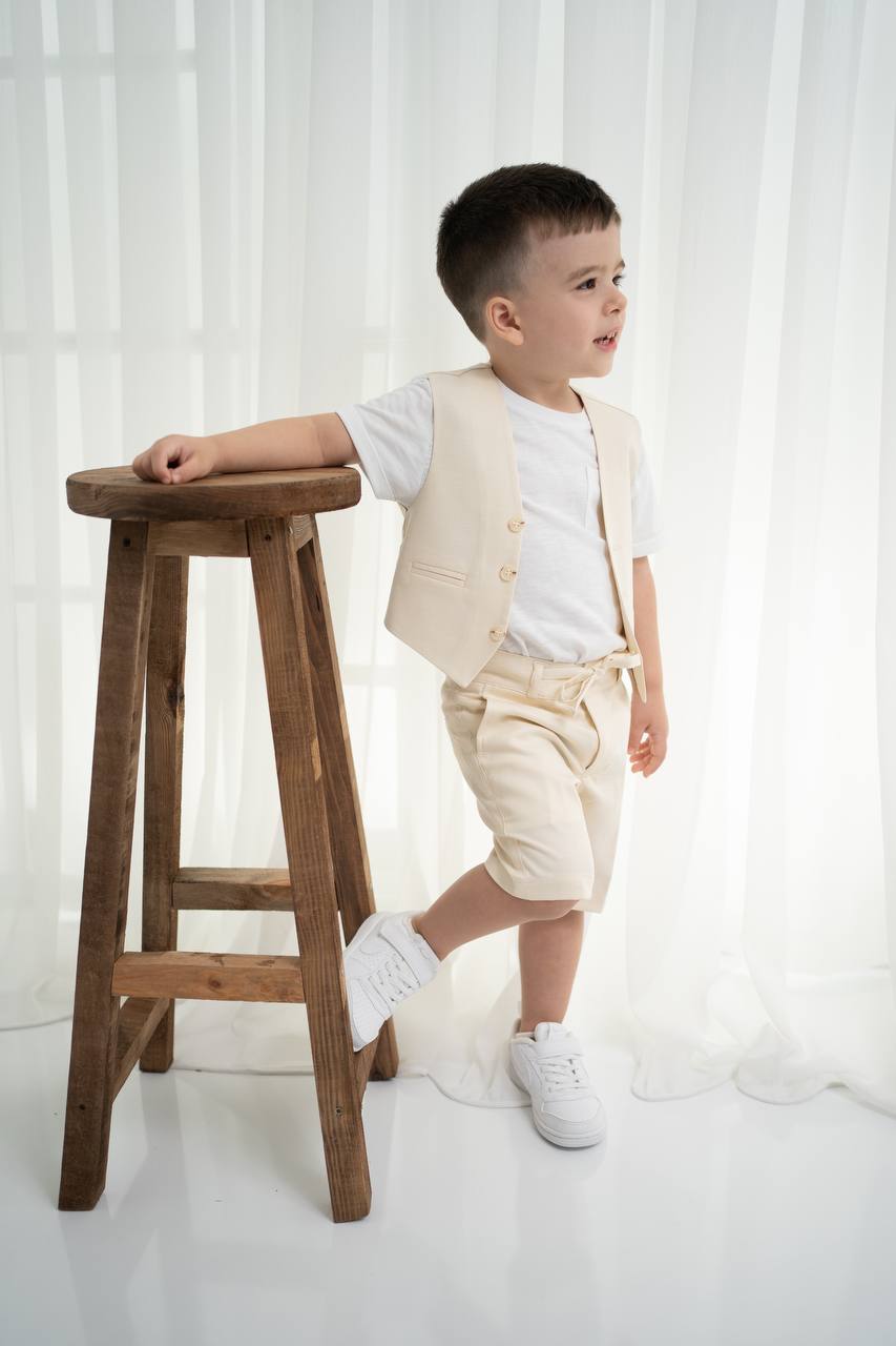 Keten Yelek, Şort ve Tişört Takımı - Erkek Çocuklar İçin Şık Kombin