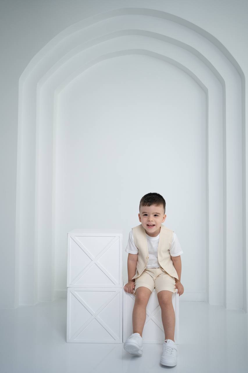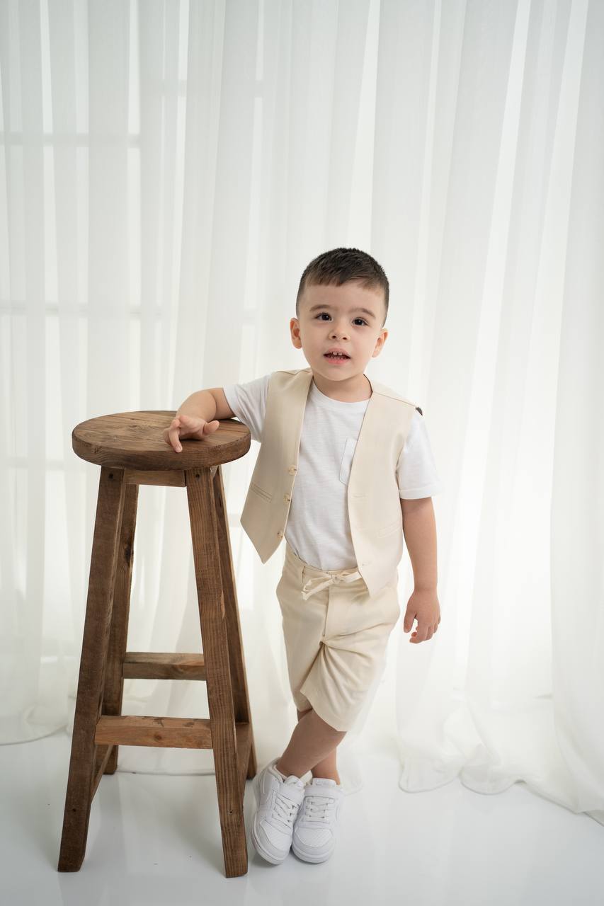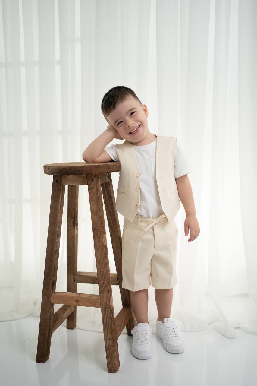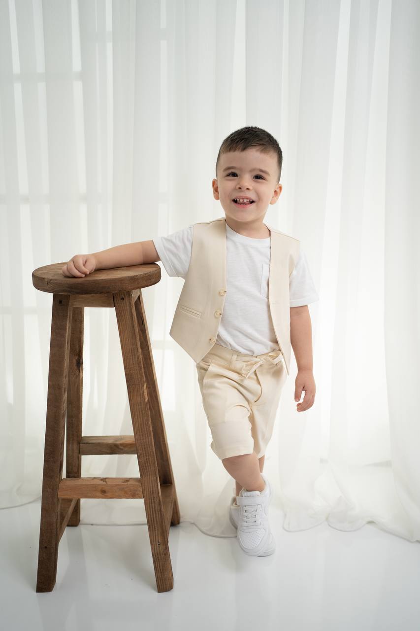Keten Yelek, Şort ve Tişört Takımı - Erkek Çocuklar İçin Şık Kombin