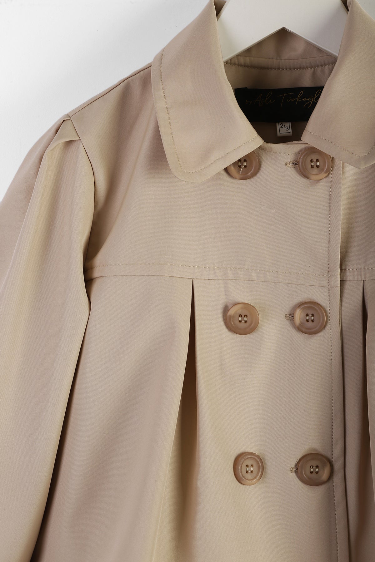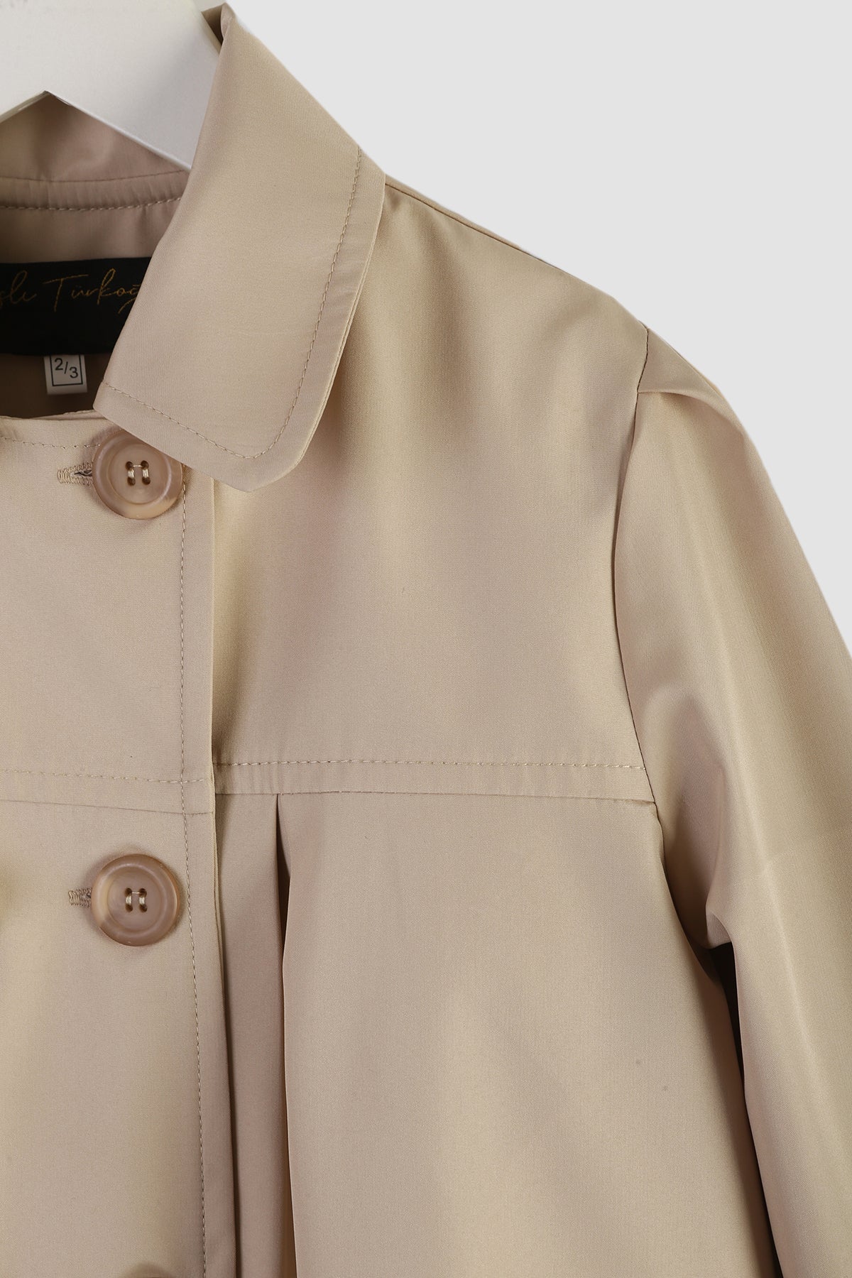 Zarafeti ve konforu bir araya getiren bu bej trençkot, minik kızların gardırobunun vazgeçilmezi olacak!