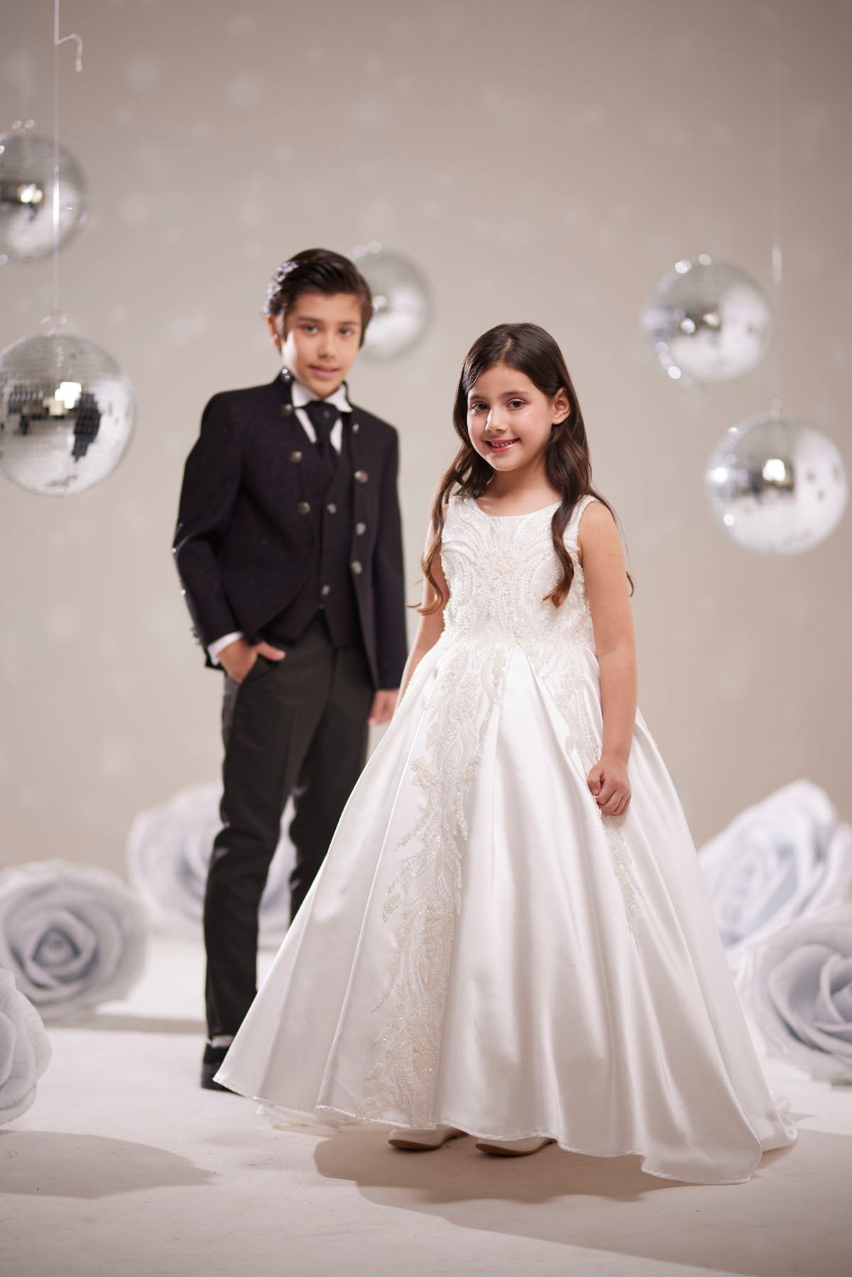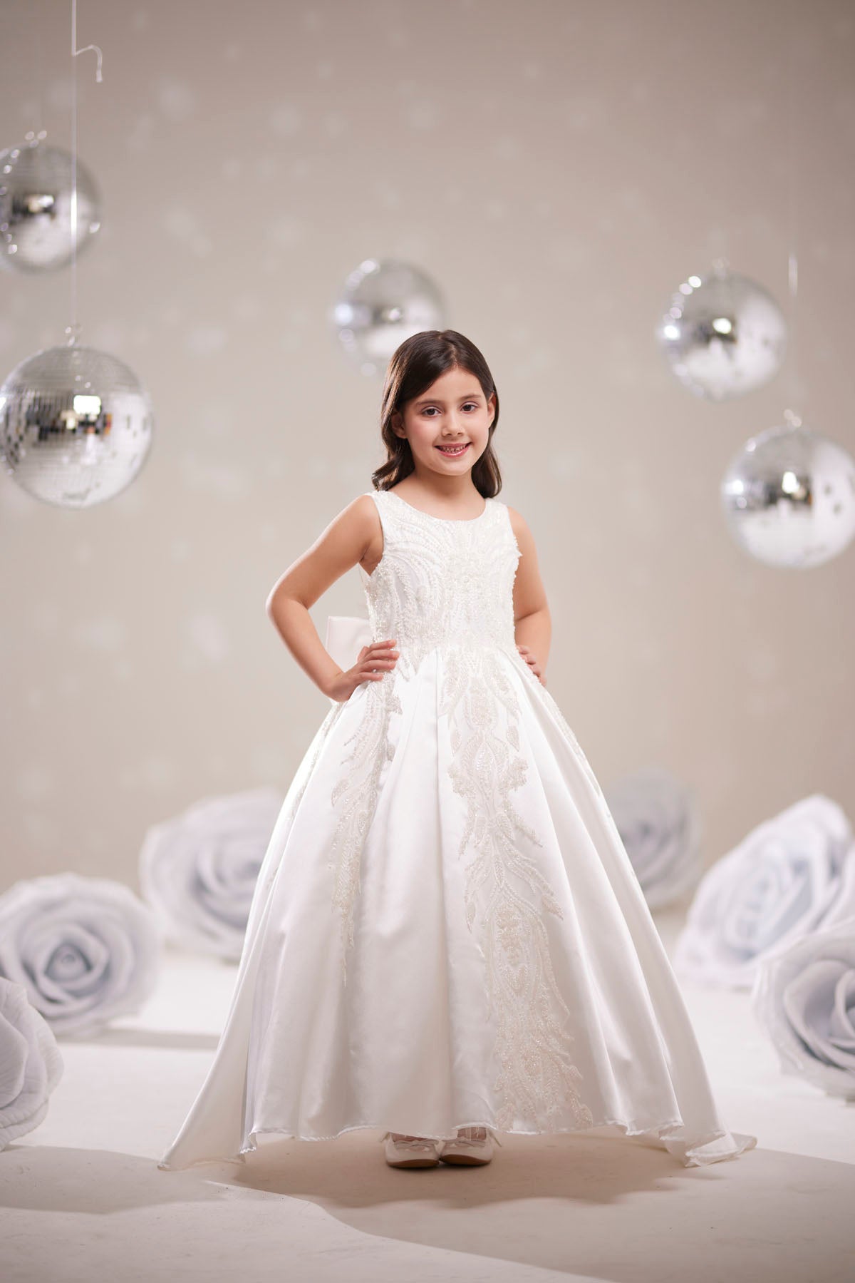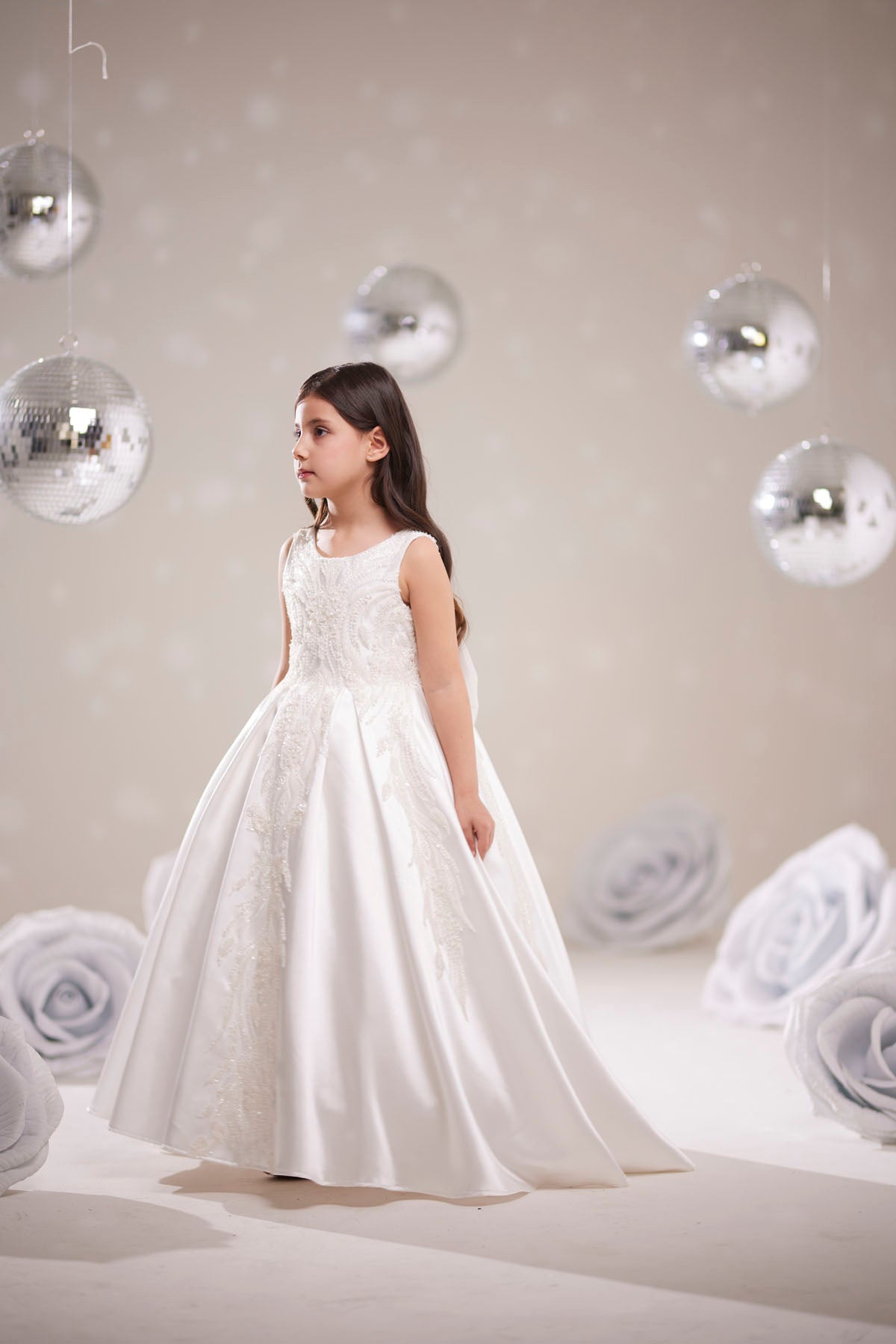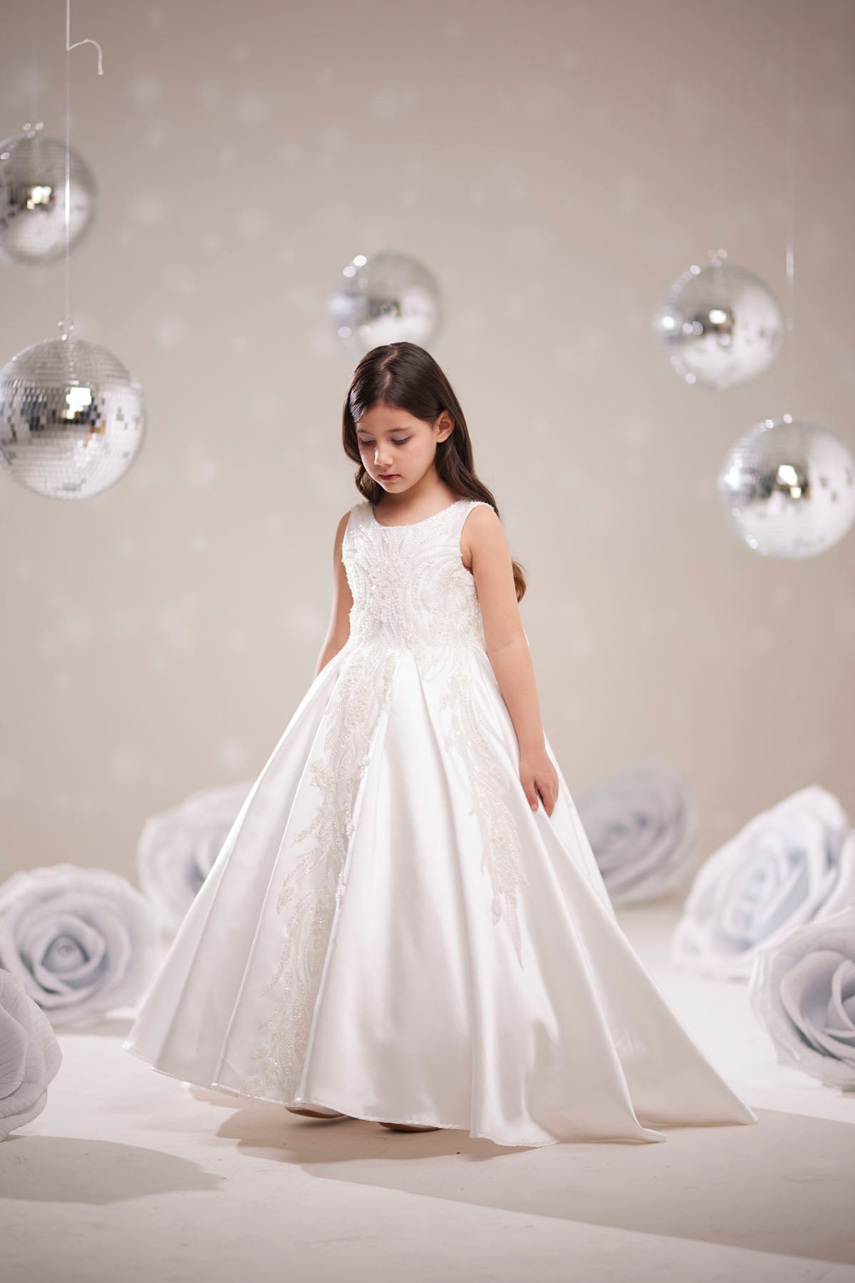 Bu zarif beyaz kız çocuk abiye elbisesi, özel günlerde minik prensesinizin göz kamaştırmasını sağlayacak şıklığa sahiptir.