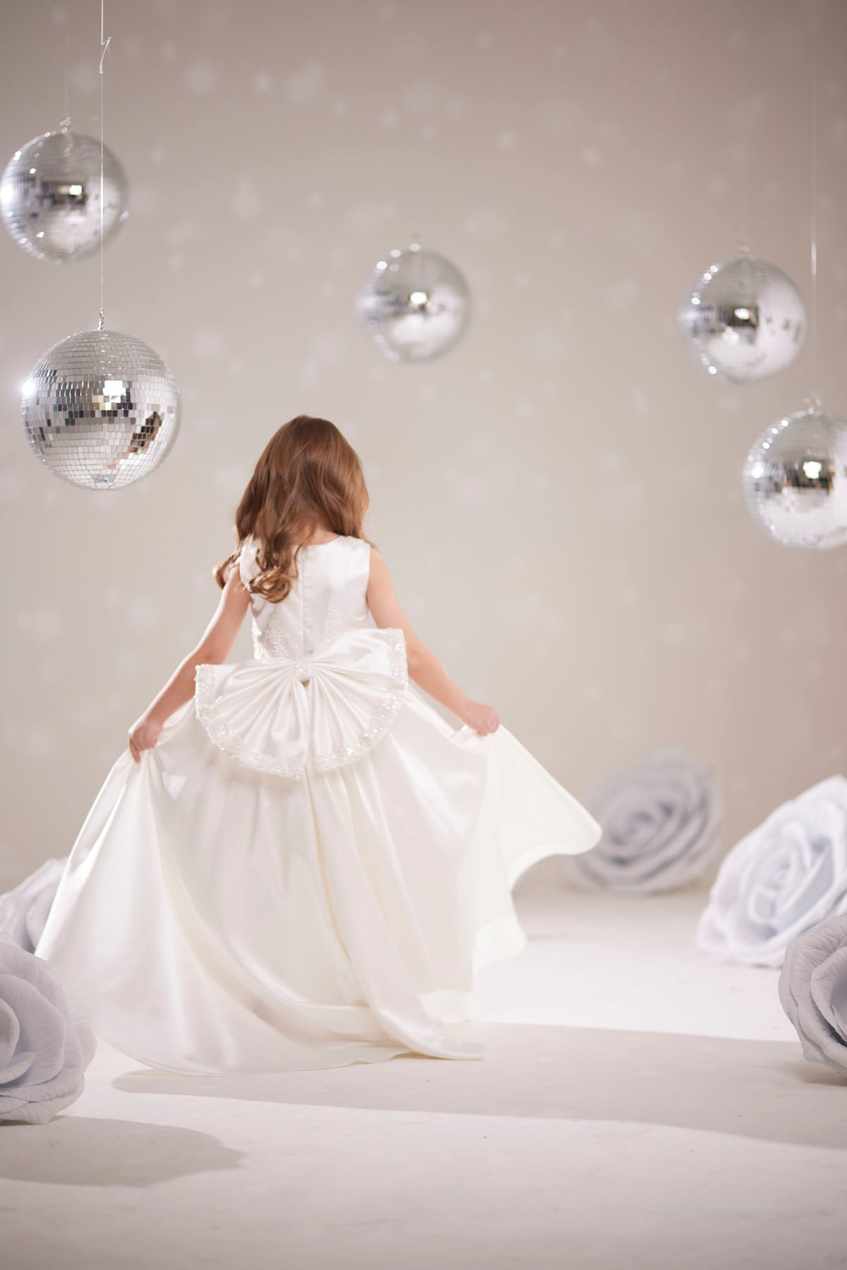 Disko topları ve pastel dekorlu özel çekimlerde gösterildiği gibi davetlerde, düğünlerde veya fotoğraf çekimlerinde zarif bir görünüm yaratır.