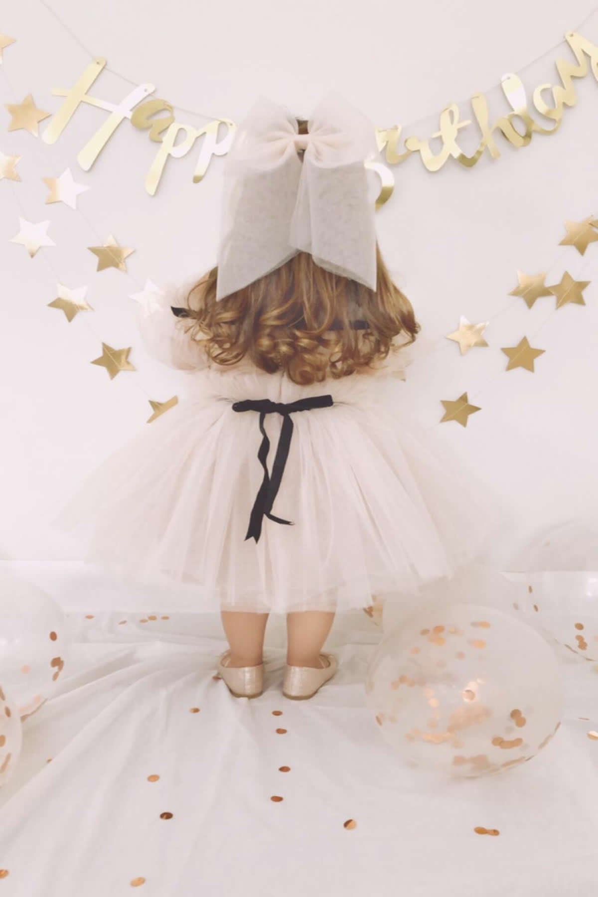 Küçük prensesinizin özel günlerde ışıltısını yansıtacak bu pudra tül elbise, zarafeti ve şıklığı bir araya getiriyor. Yumuşak tül kumaşı, kabarık eteği ve omuzdan inen siyah kurdele detaylarıyla hem konforlu hem de göz alıcı bir görünüm sunar. Doğum günü, düğün, bayram veya fotoğraf çekimleri gibi tüm özel anlarda mükemmel bir tercih. Arka kısmındaki büyük fiyonk aksesuarı ile masalsı bir hava katıyor.