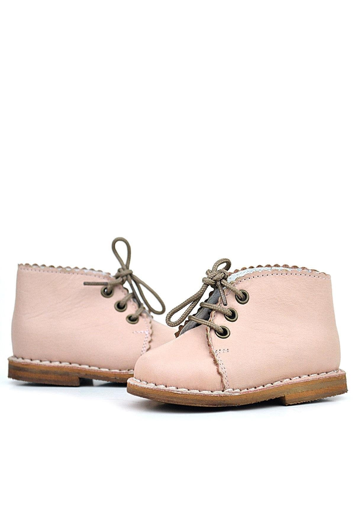 Pudra Pembe El Yapımı Deri Bebek Botu